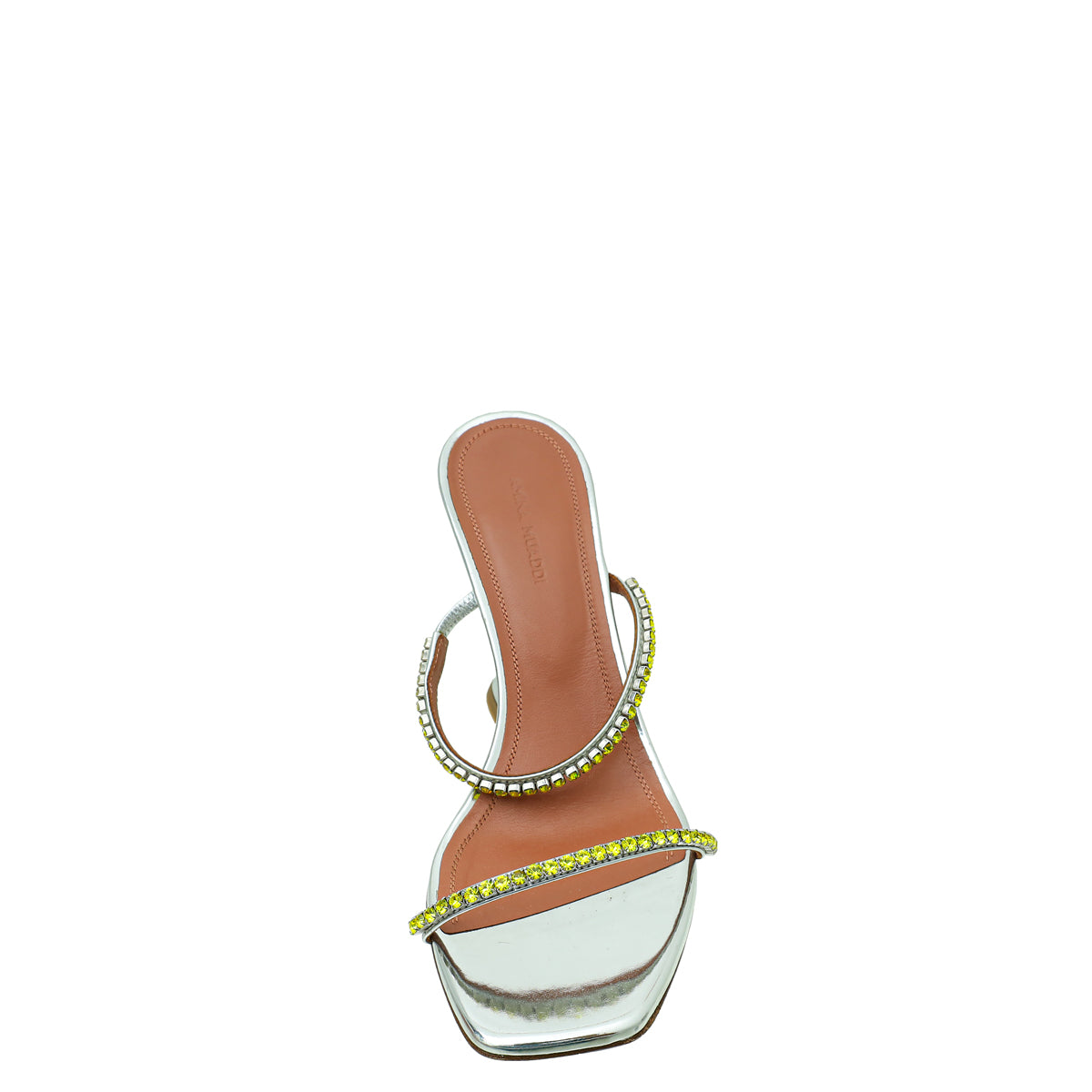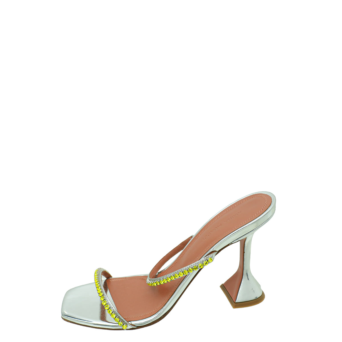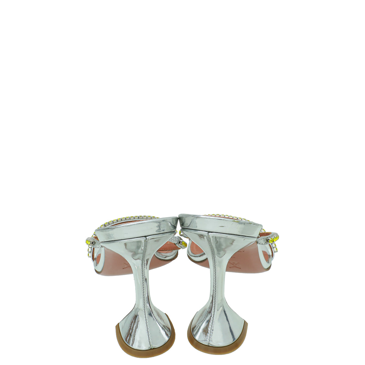 Amina Muaddi Metallic Silver Gilda Sandals 38