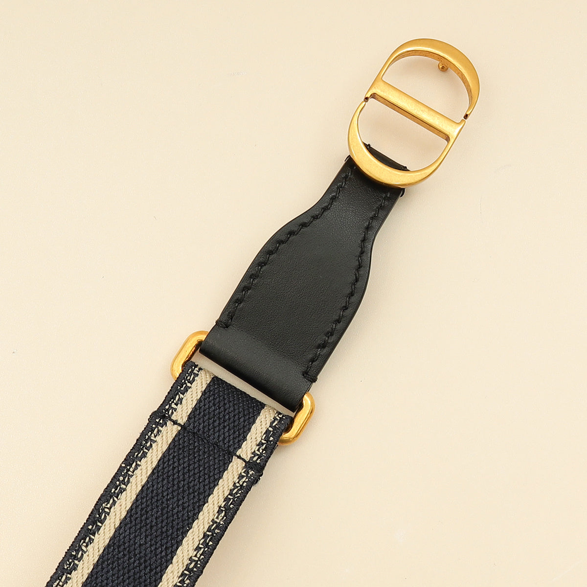 Christian Dior Navy Blue Jacquard Logo Oblique CD Waist Belt