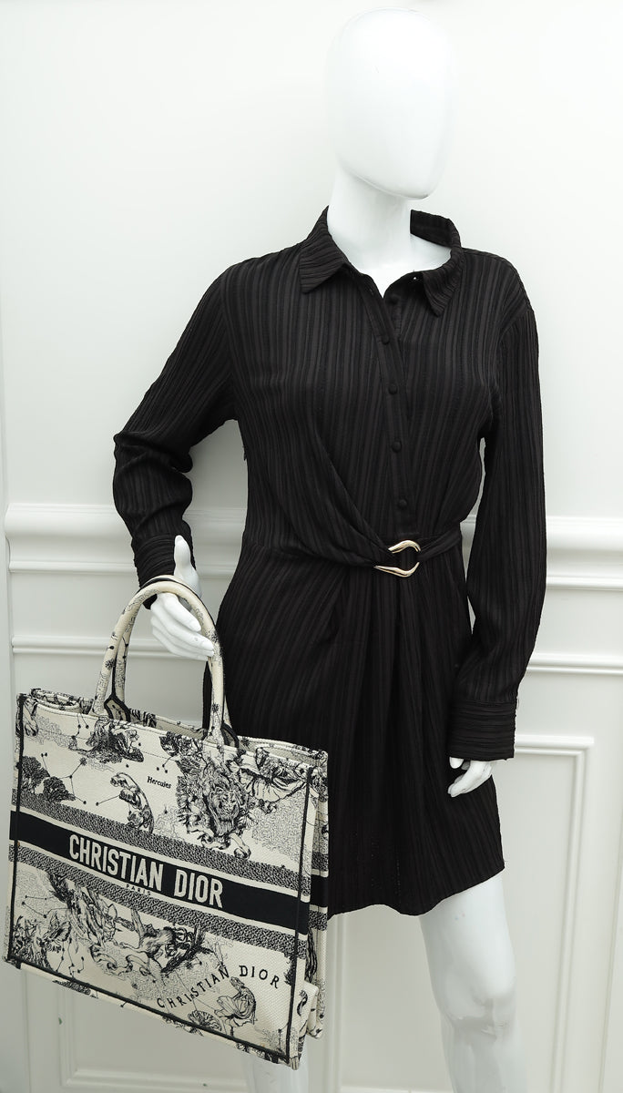 Christian Dior Bicolor Toile de Jouy Zodiac Embroidery Book Tote Large Bag