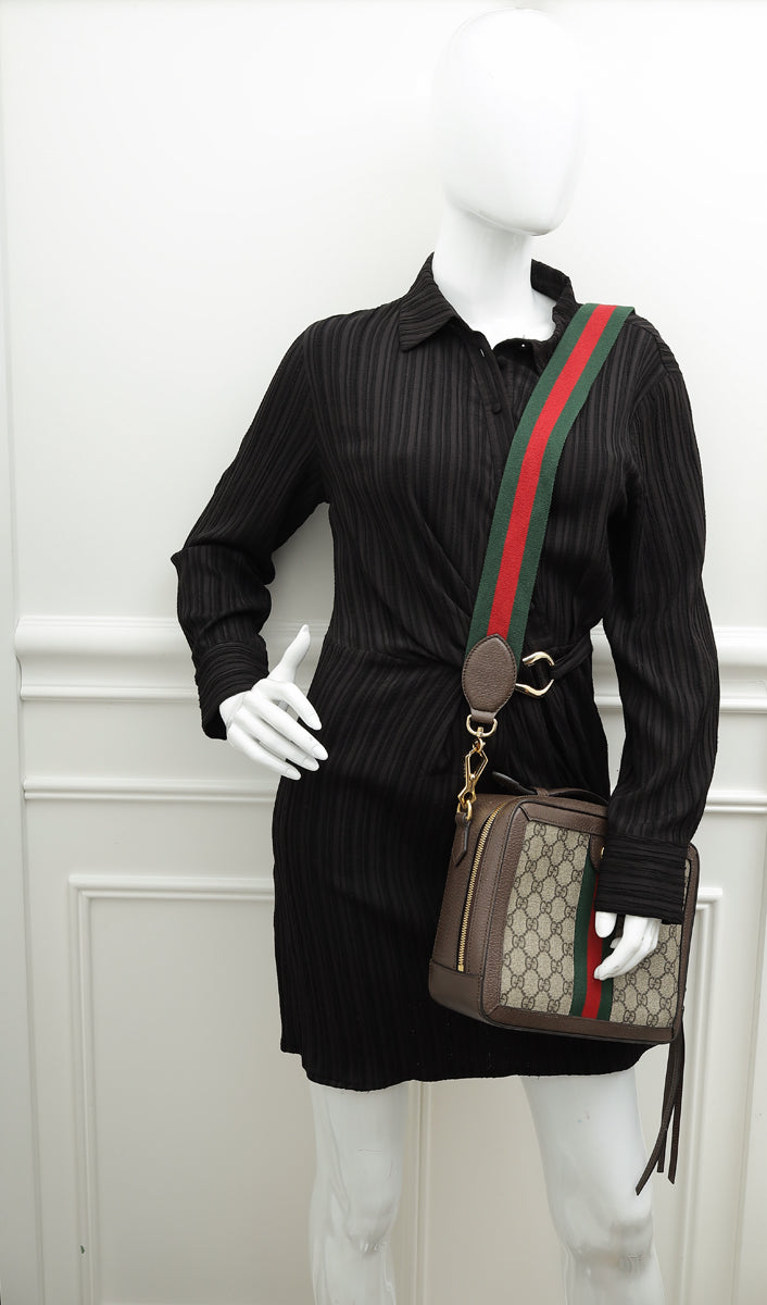 Material: Ebony GG Coated Canvas with Brown Leather Trim and Green/Red Web
