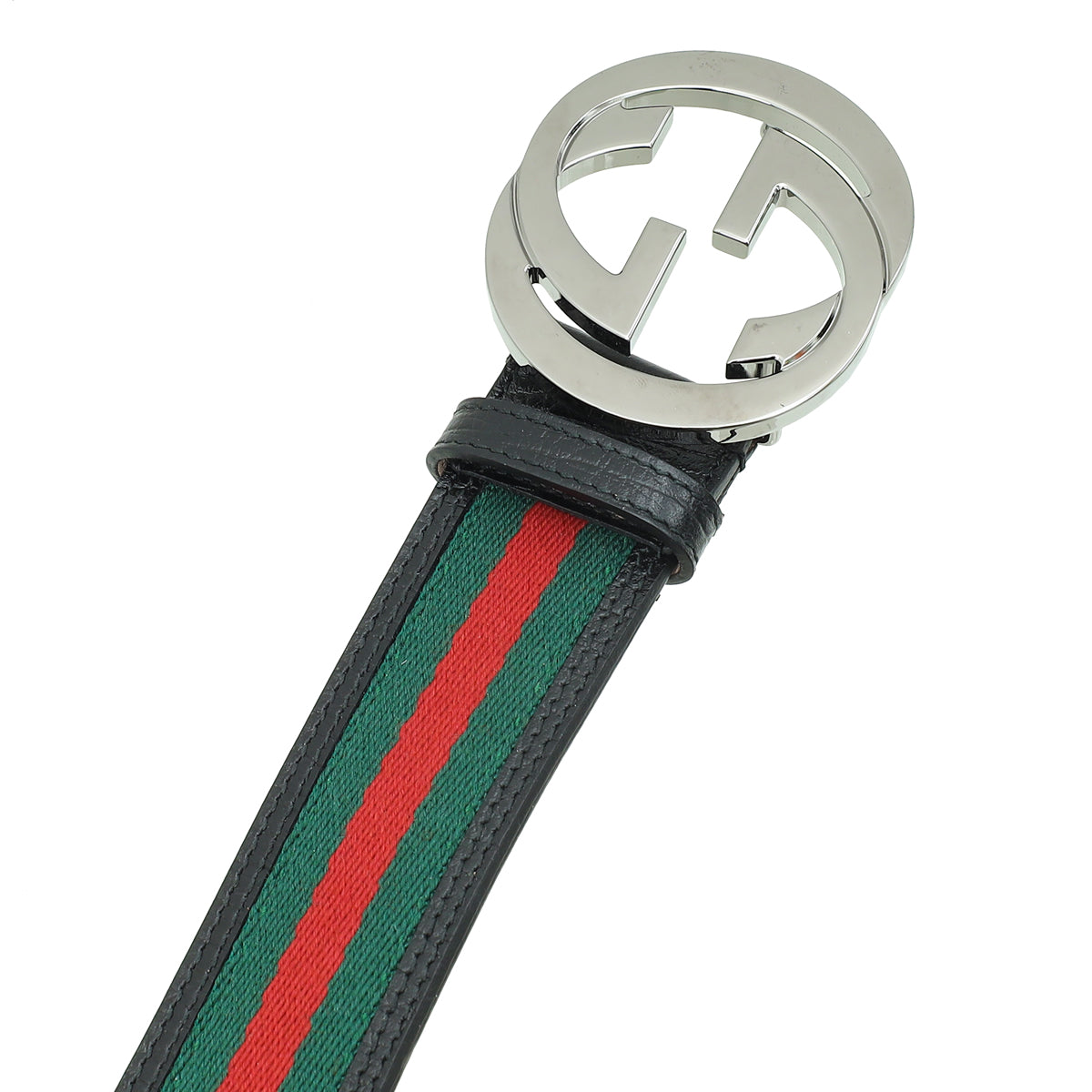 Gucci Tricolor Interlocking G Buckle Web Belt 46
