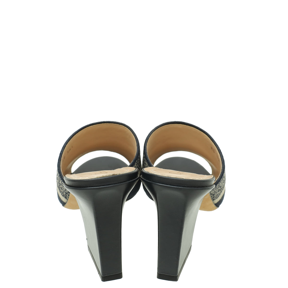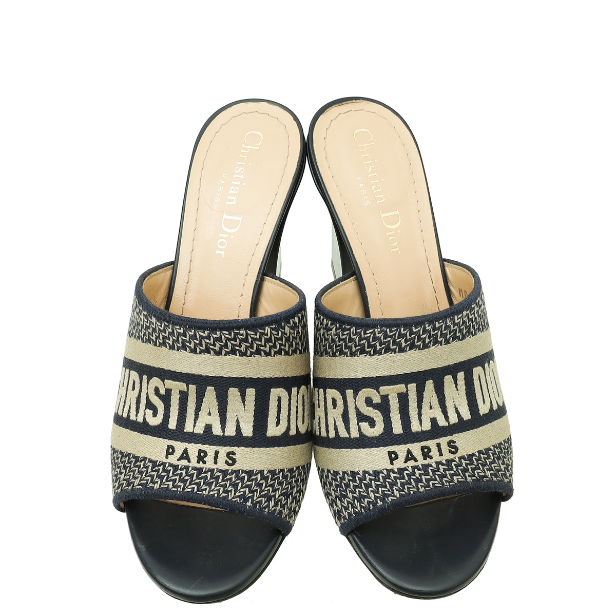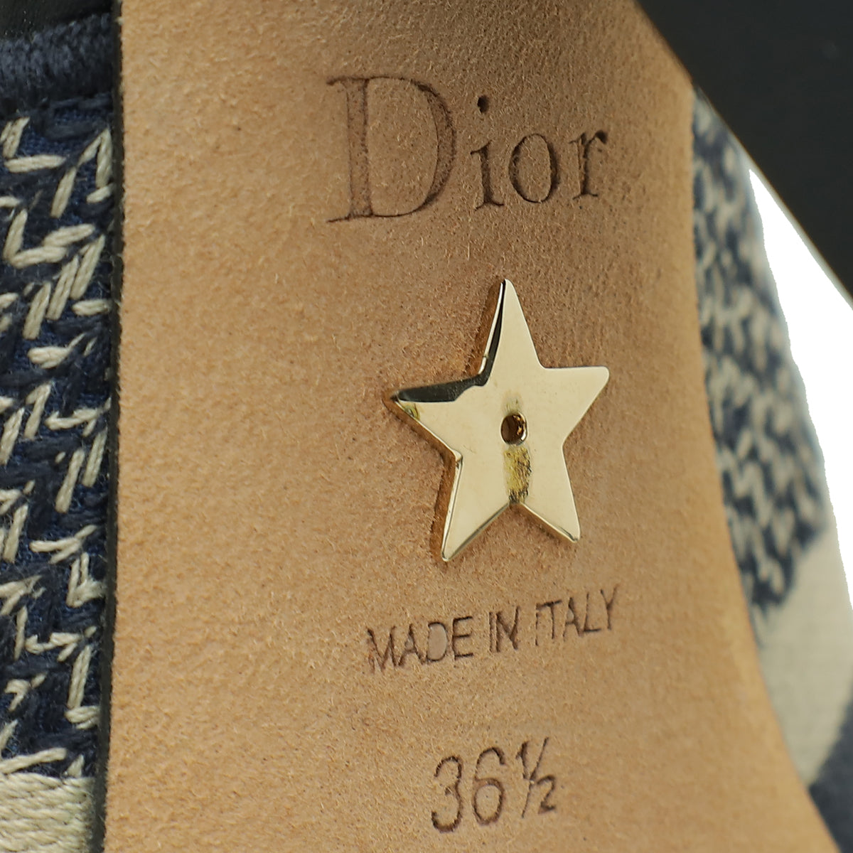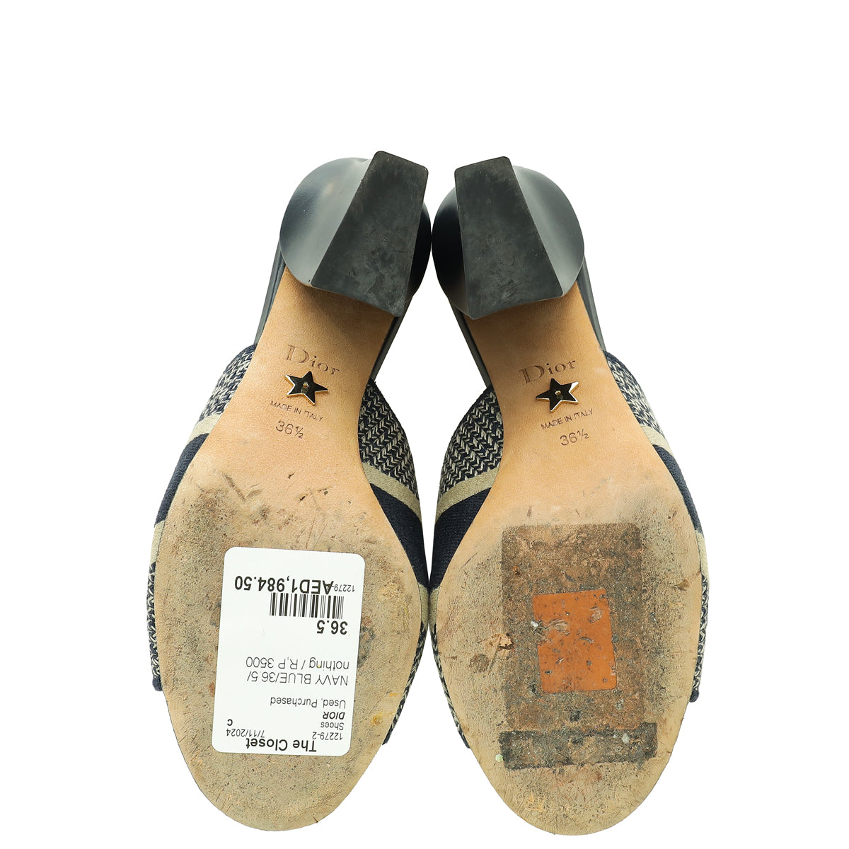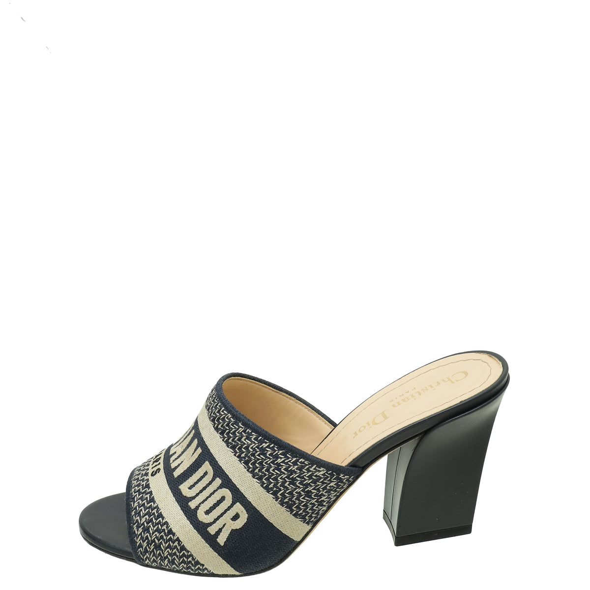 Christian Dior Navy Blue Dway Embroidered Heeled Mules 36.5