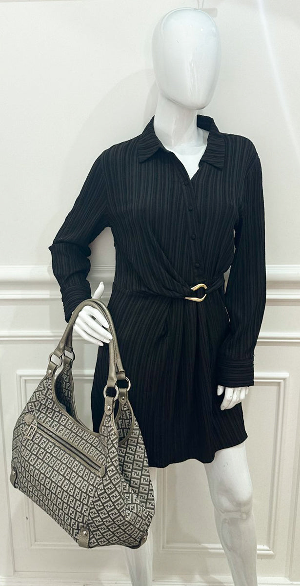Fendi Metallic Grey Zucchino Shoulder Bag