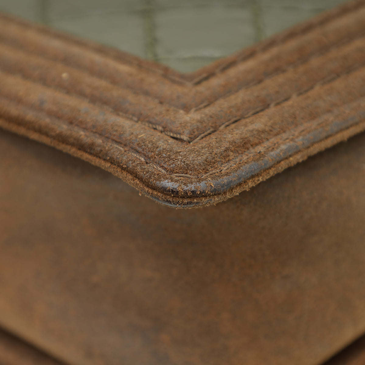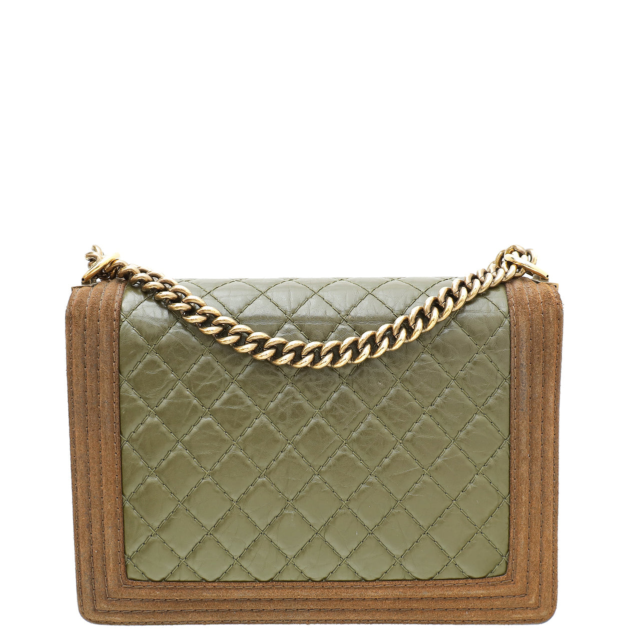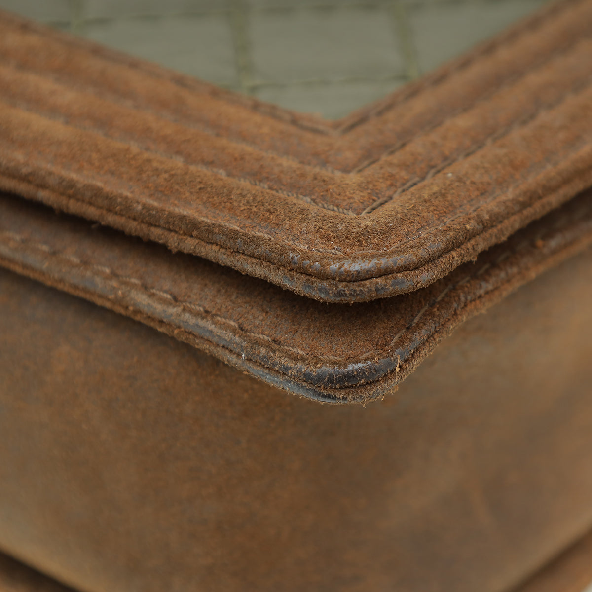 Material: Olive Crinkled Calfskin Leather and Brown Suede