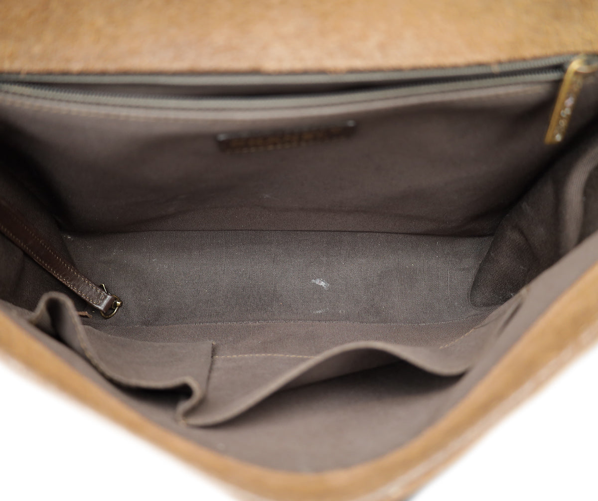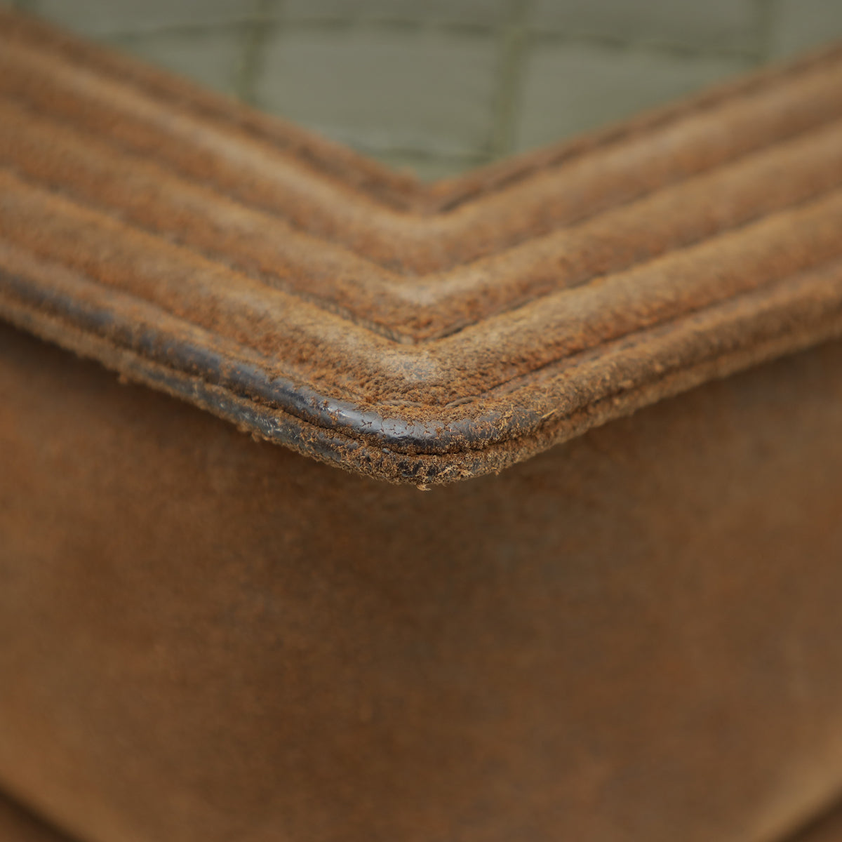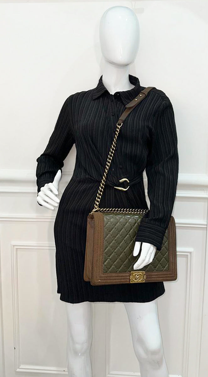 Material: Olive Crinkled Calfskin Leather and Brown Suede
