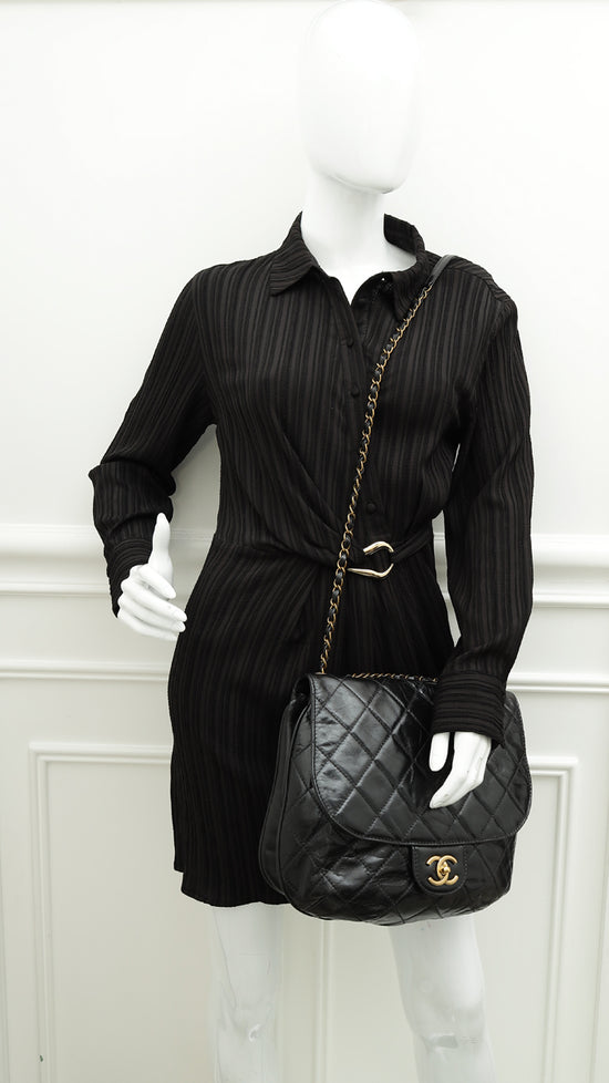 Chanel Black CC Bubble Large Messenger Flap Bag