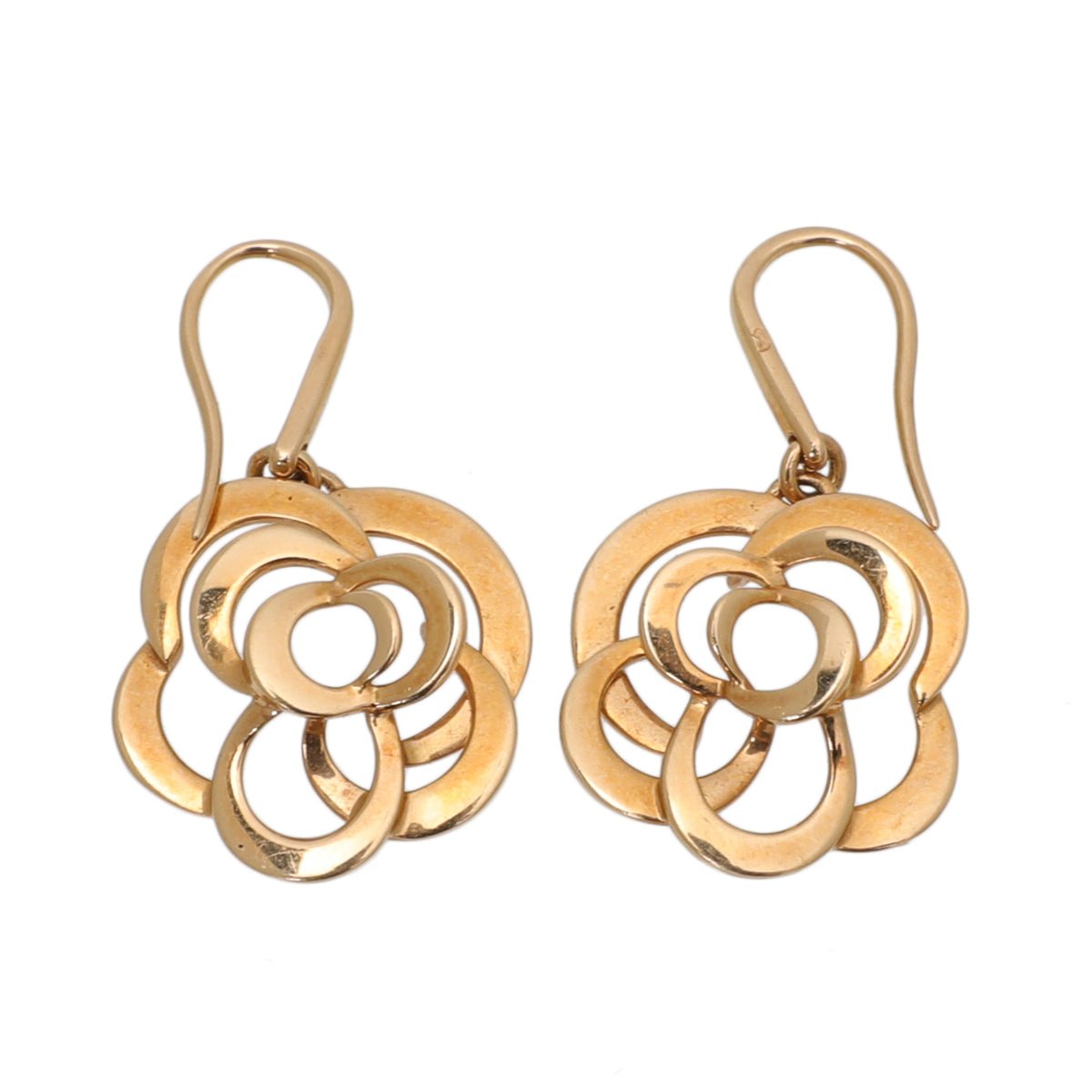 Chanel 18K Yellow Gold Fil De Camelia Earrings