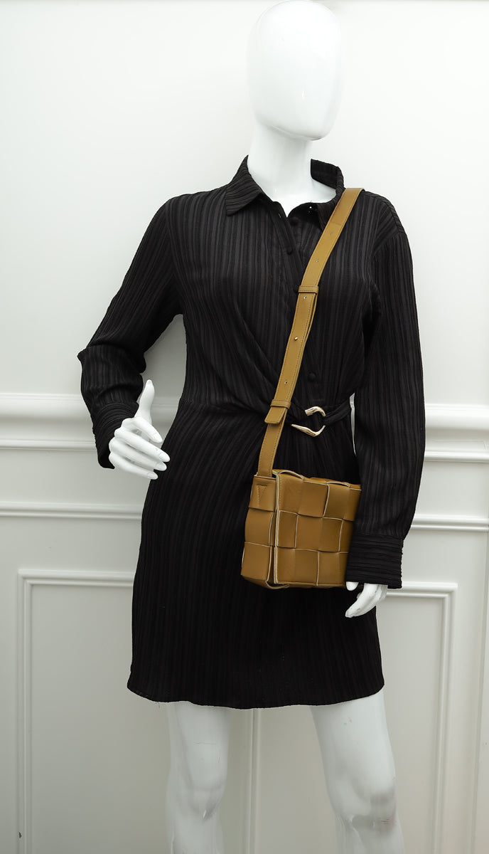 Bottega Veneta Kaki Brown Intreccio Cassette Classic Crossbody Bag