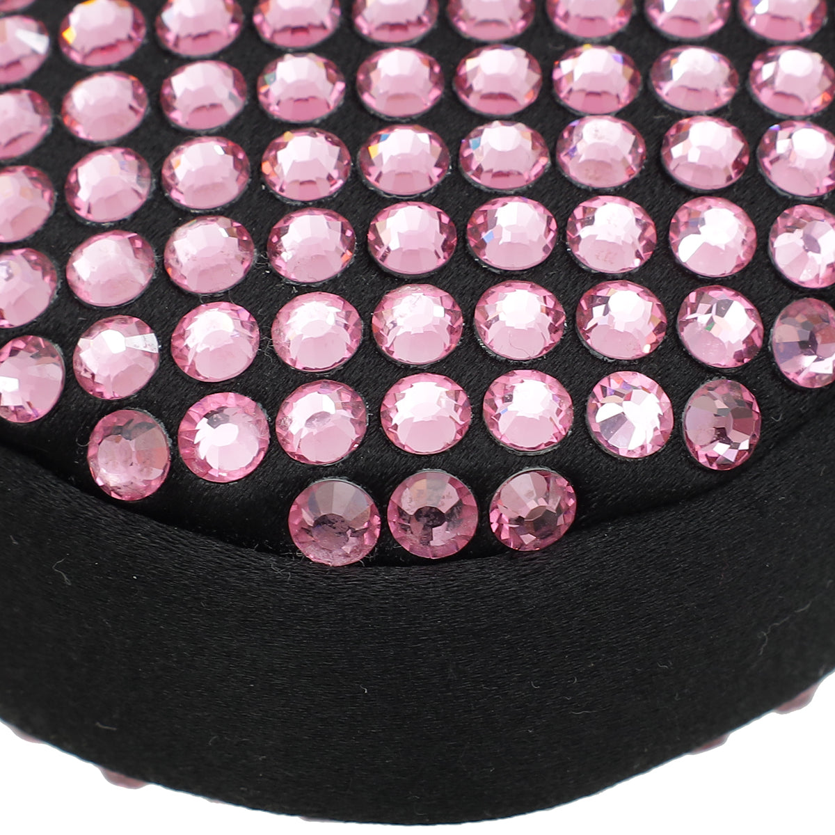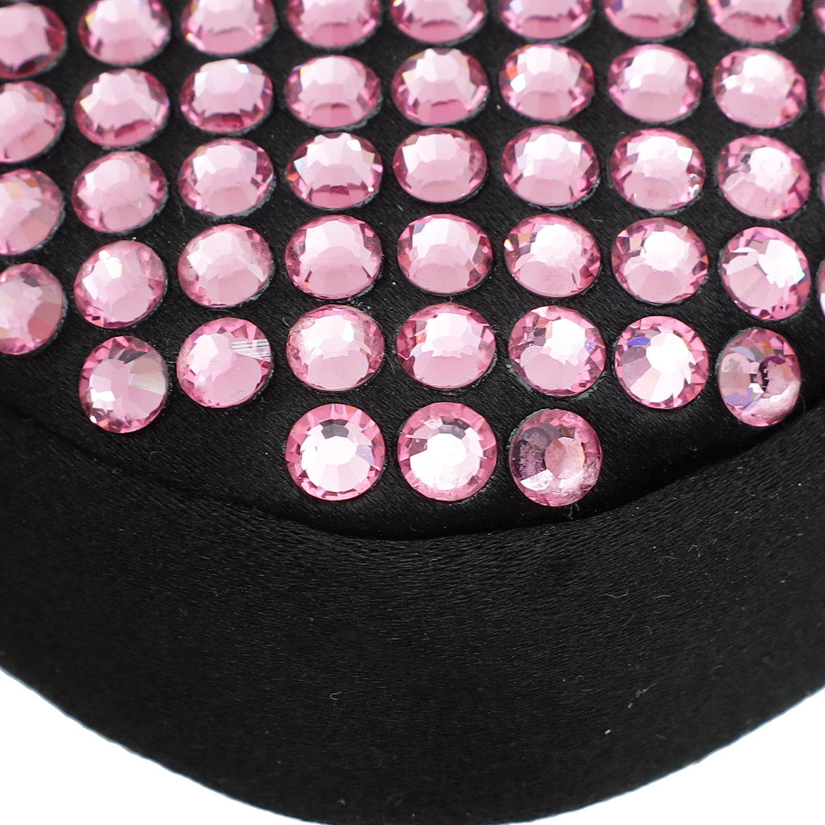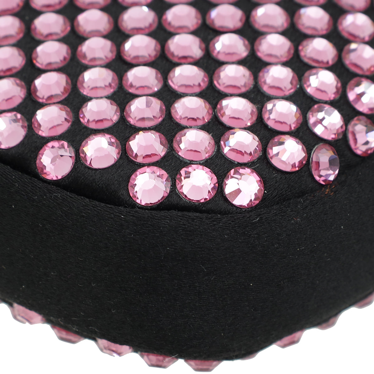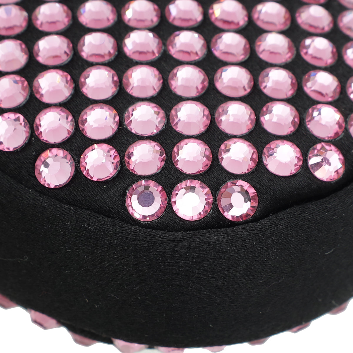 Material: Black Satin with Rosa Crystal and Leather Trim