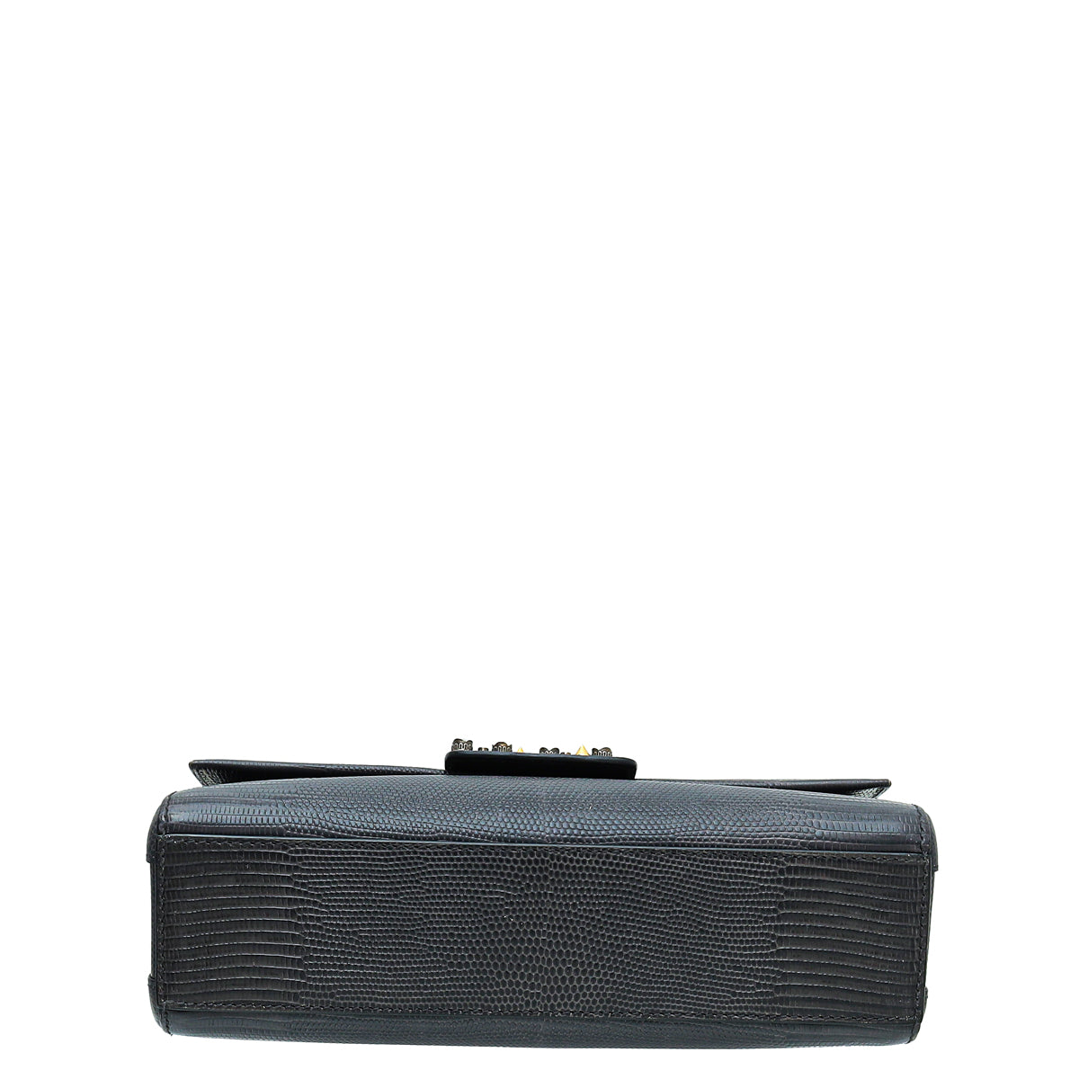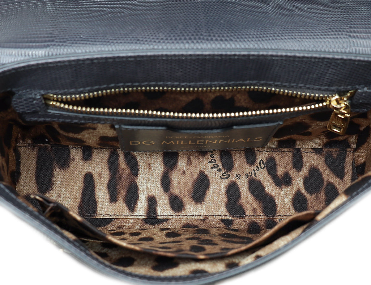 Dolce & Gabbana Grey Lizard Embossed DG Millennials Flap Bag