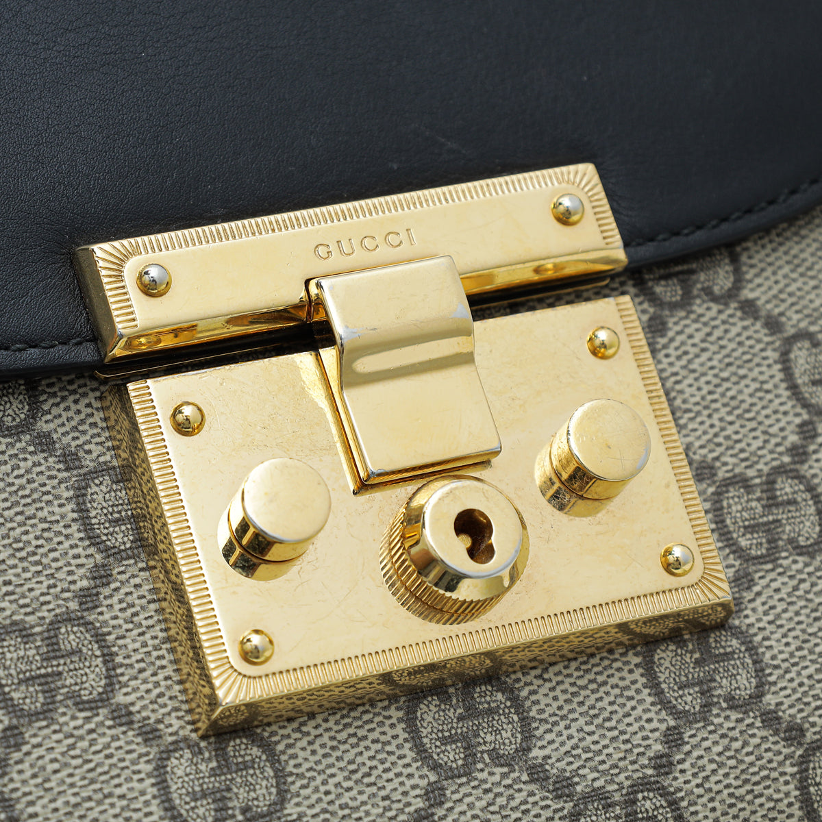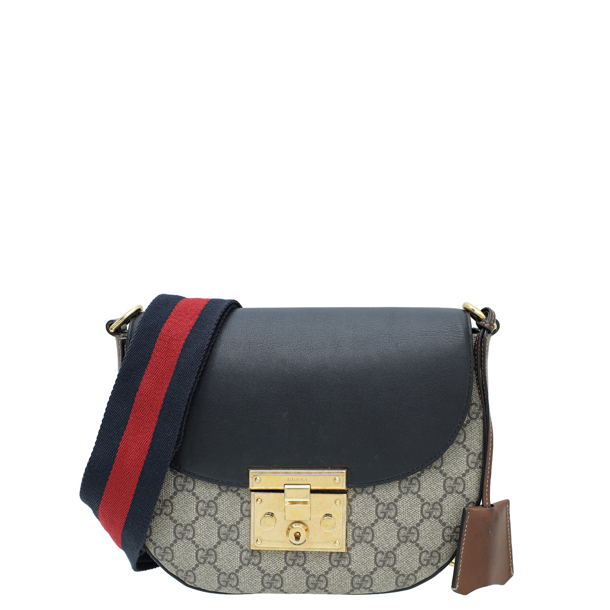 Gucci Multicolor GG Supreme Calf Web Padlock Medium Messenger Bag
