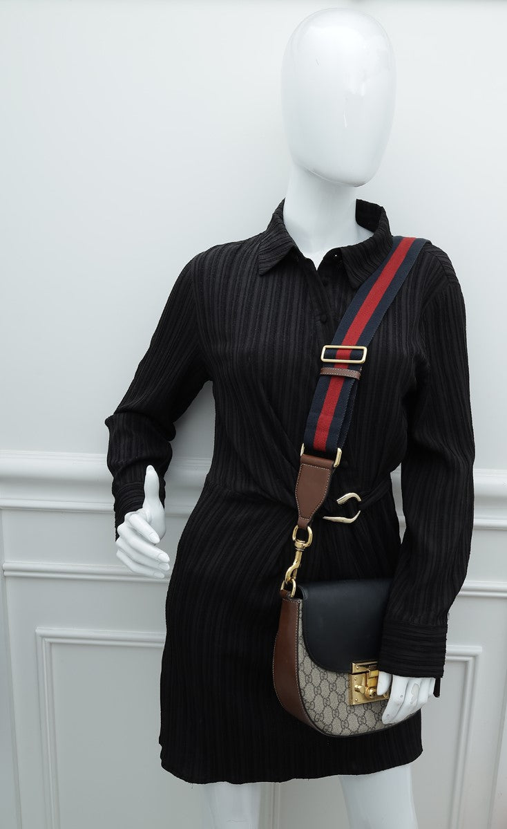 Material: Ebony GG Supreme Canvas with Black/Brown Smooth Calf Leather and Navy/Red Web Strap
