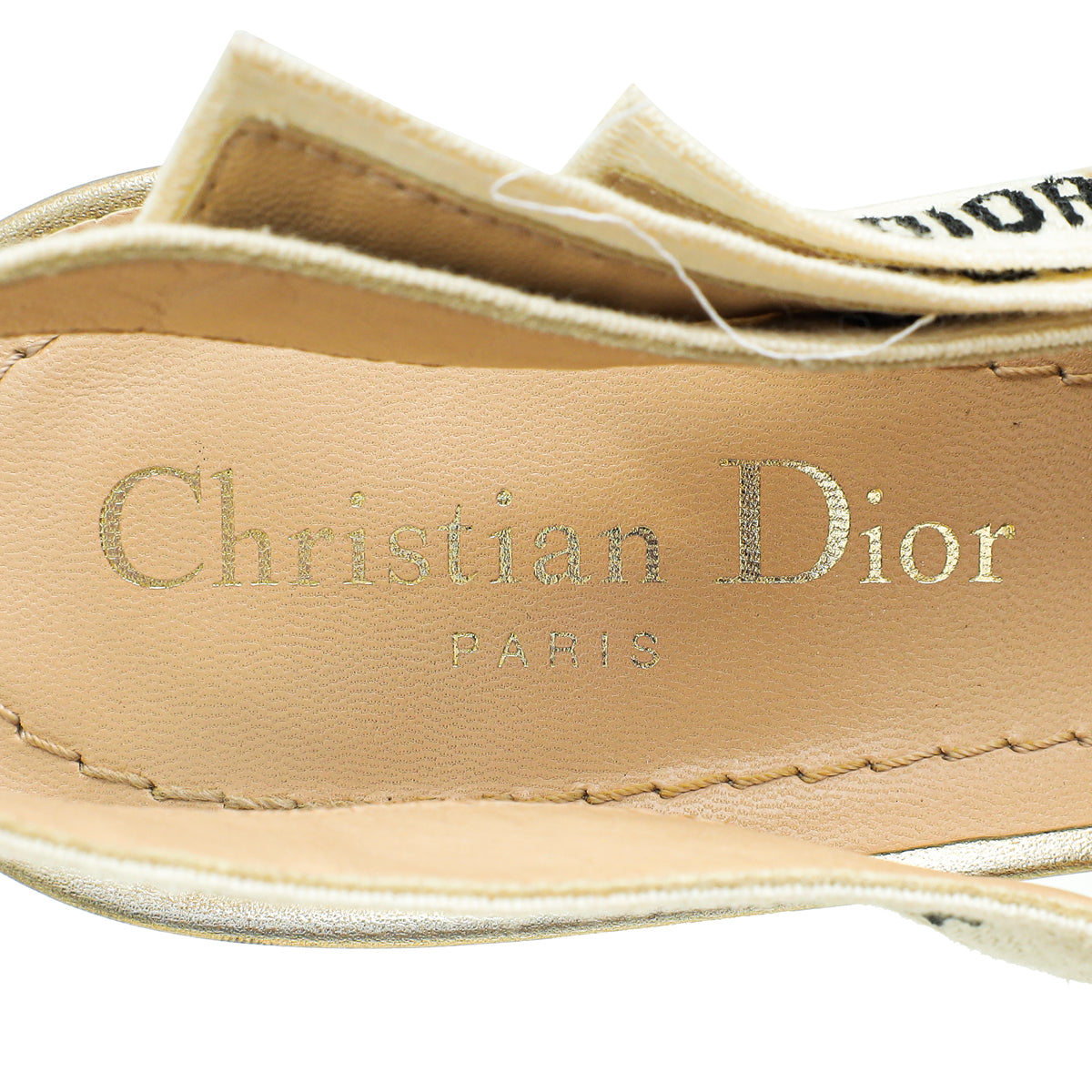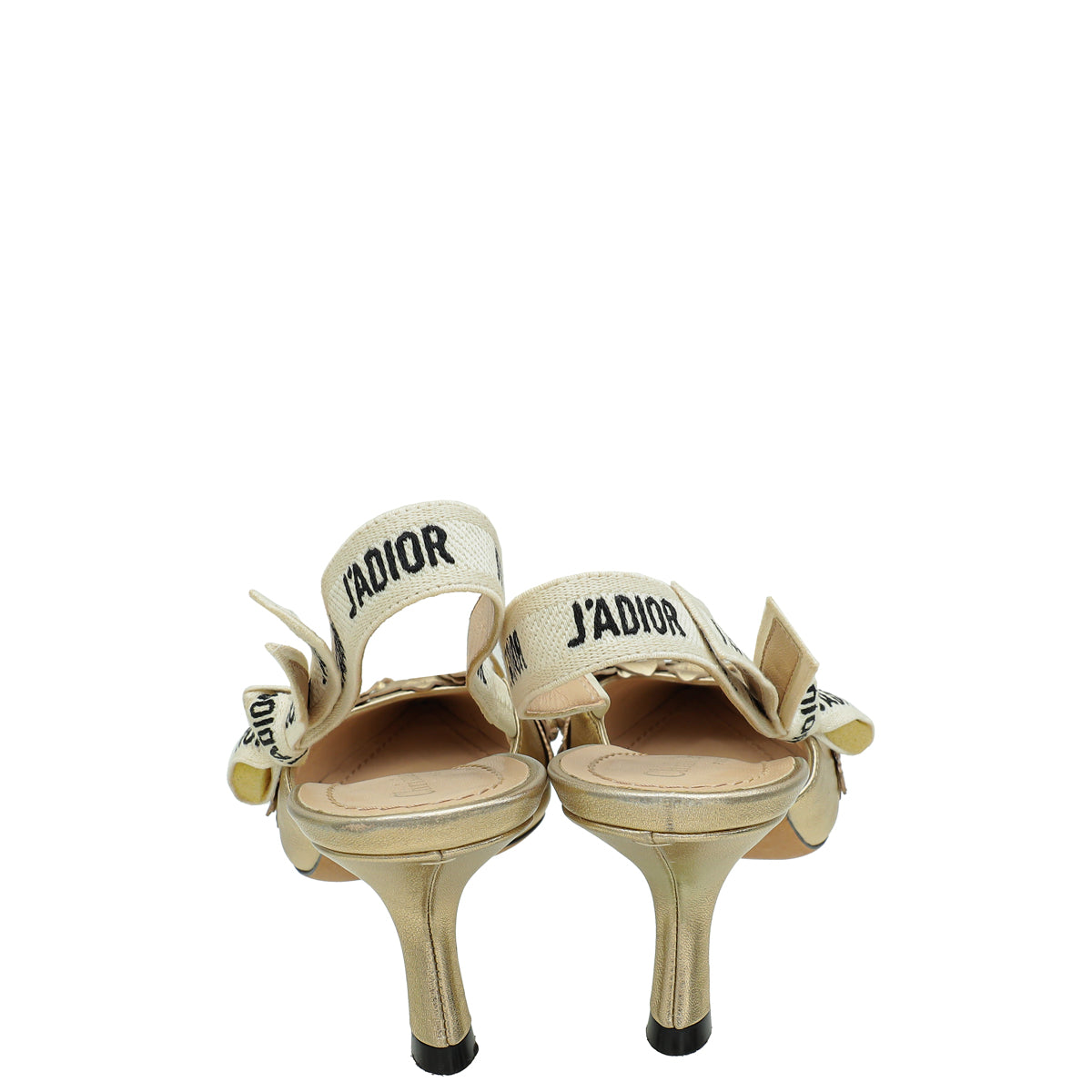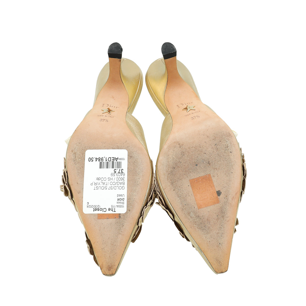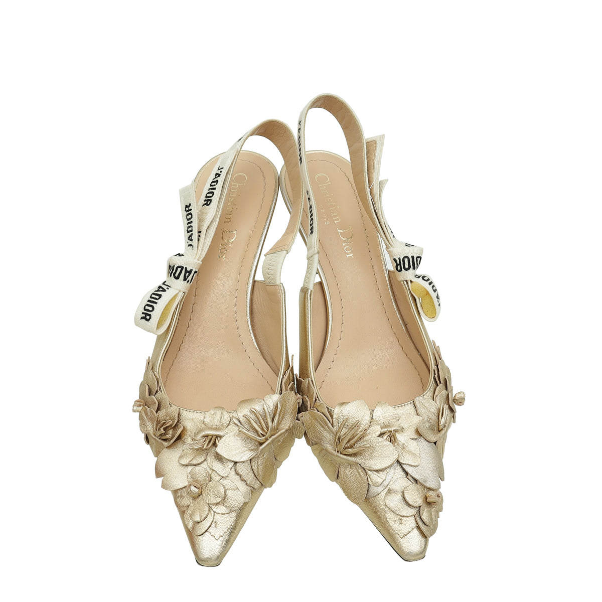 Christian Dior Gold Applique Flowers J'Adior Slingback Pump 37.5