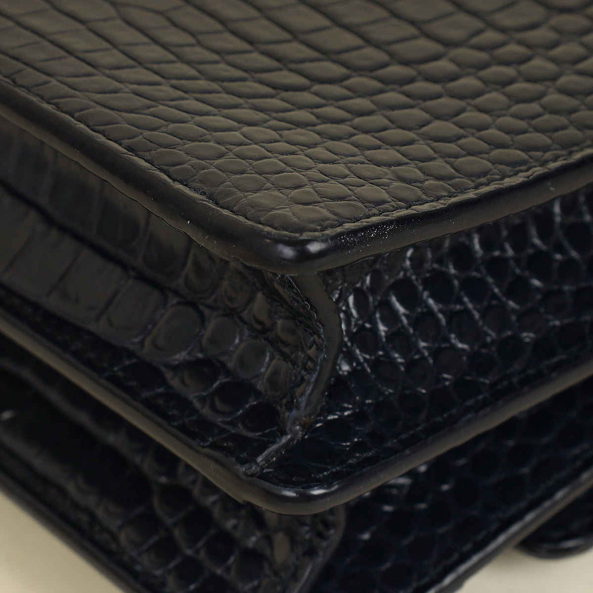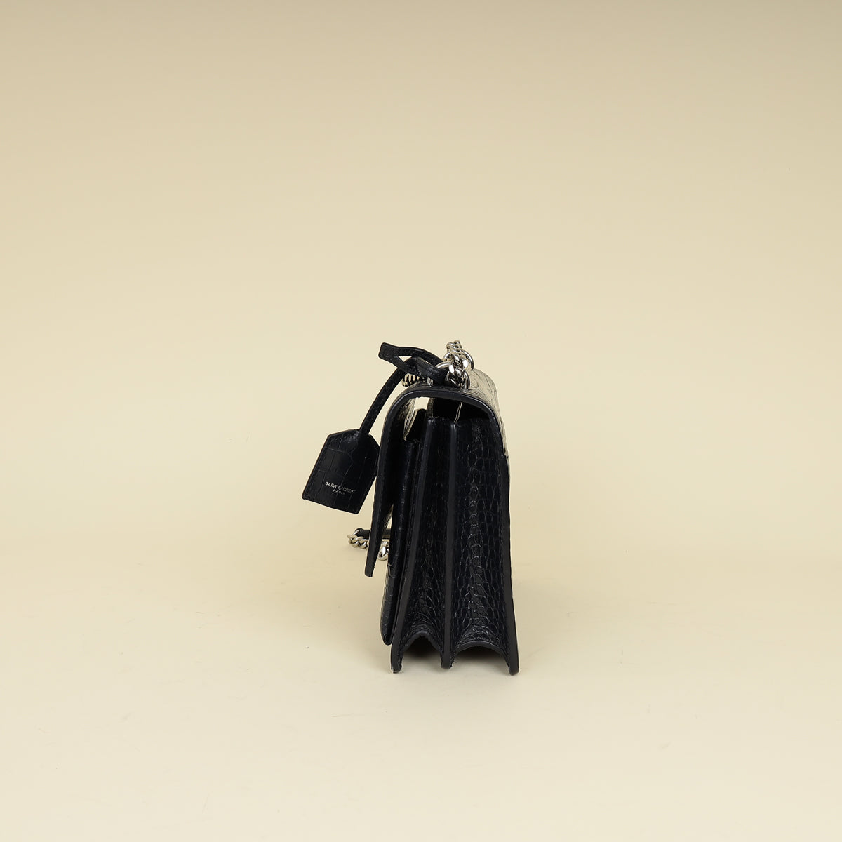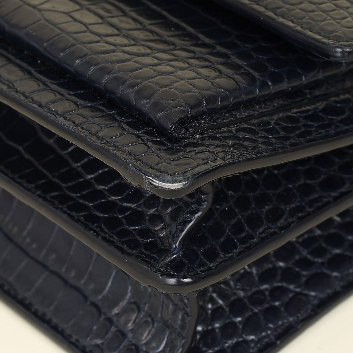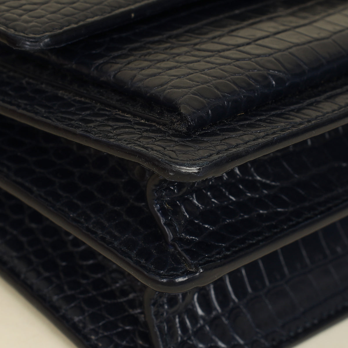 YSL Dark Blue Croco Embossed Sunset Chain Shoulder Bag