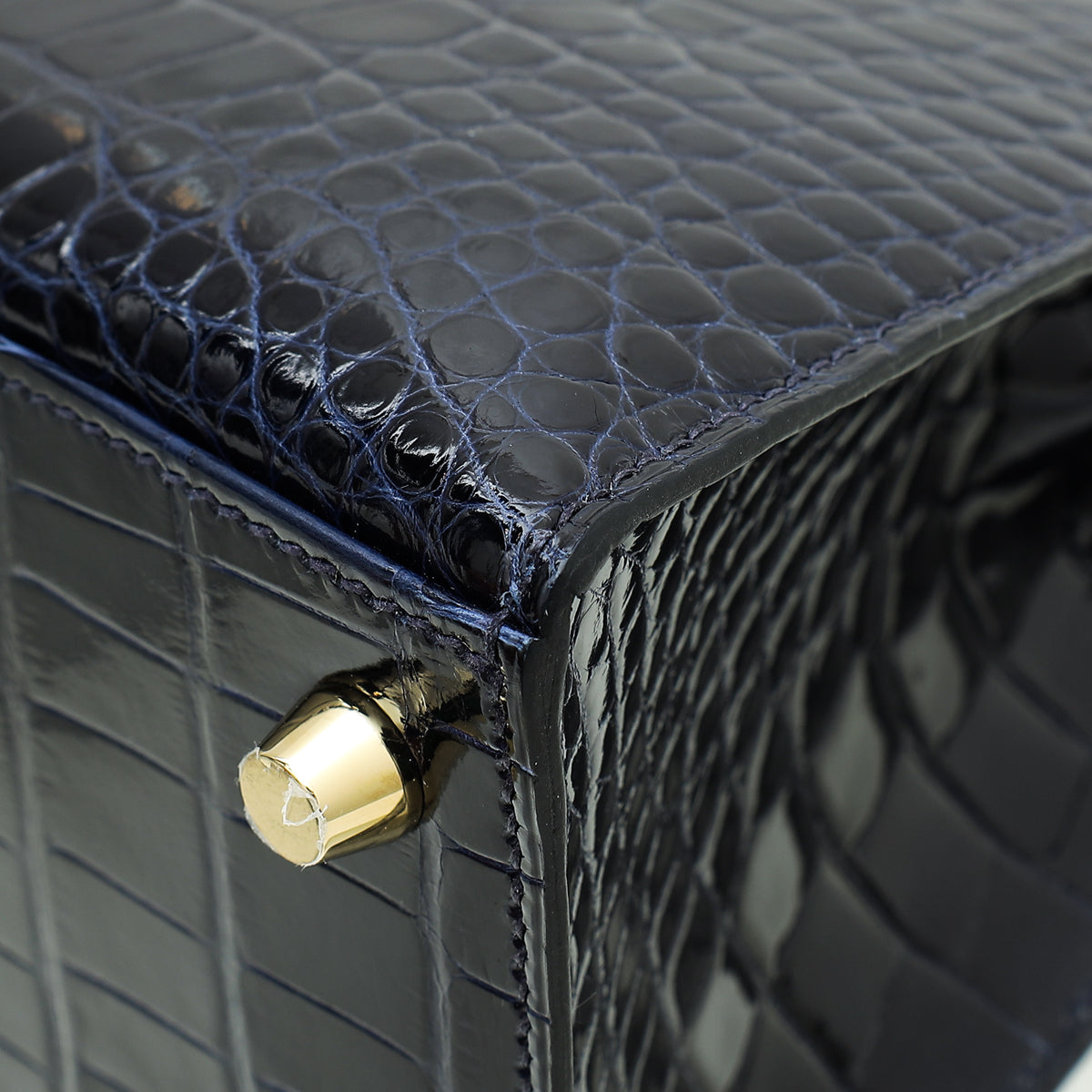 Hermes Blue Marine Shin Alligator Sellier Kelly 25 Bag