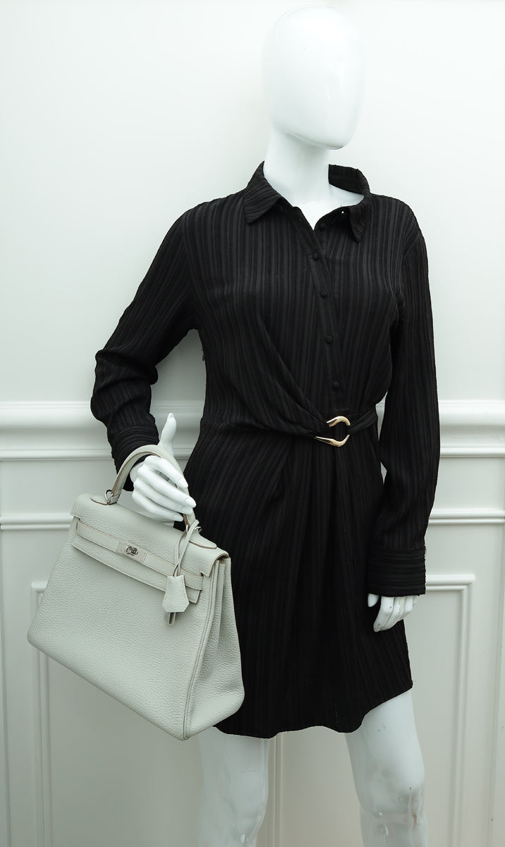 Hermes Gris Perle Retourne Kelly 32 Bag W/ Toile Sangle Strap