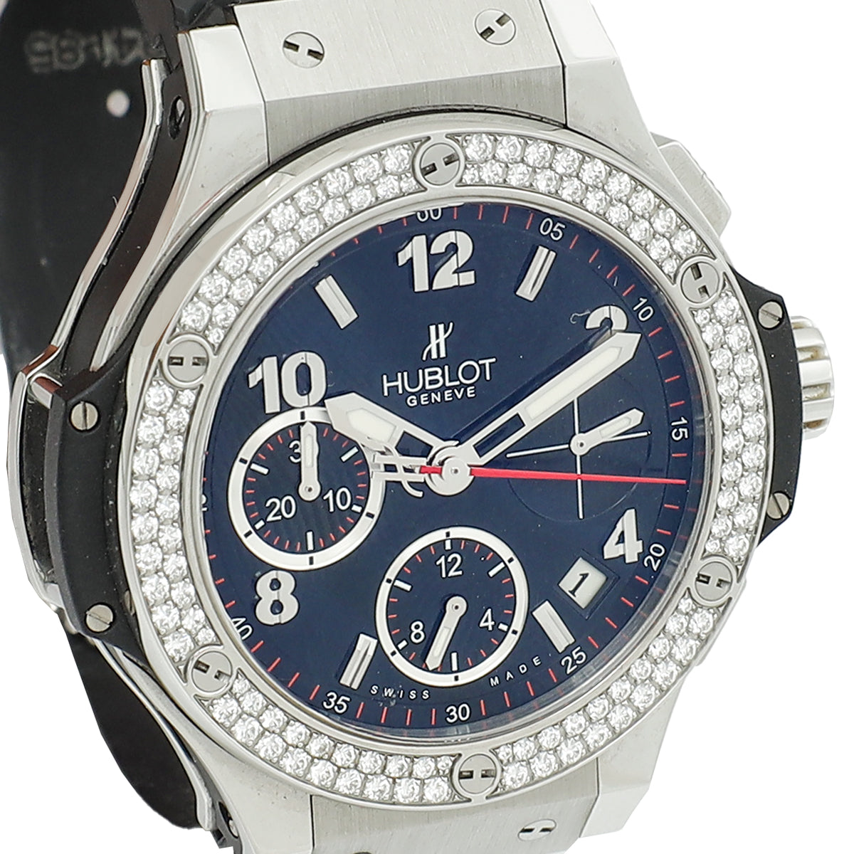 - Material: Stainless Steel/ Ceramic/Titanium with Blue Dial and Diamonds and Black Rubber Strap