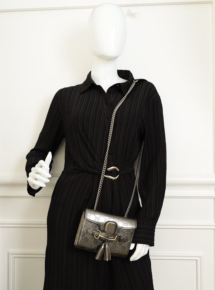 Gucci Metallic Gray GG Shine Mini Emily Bag