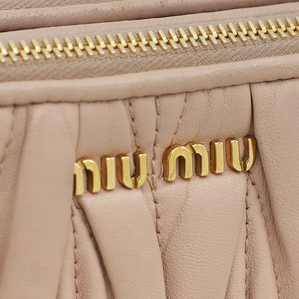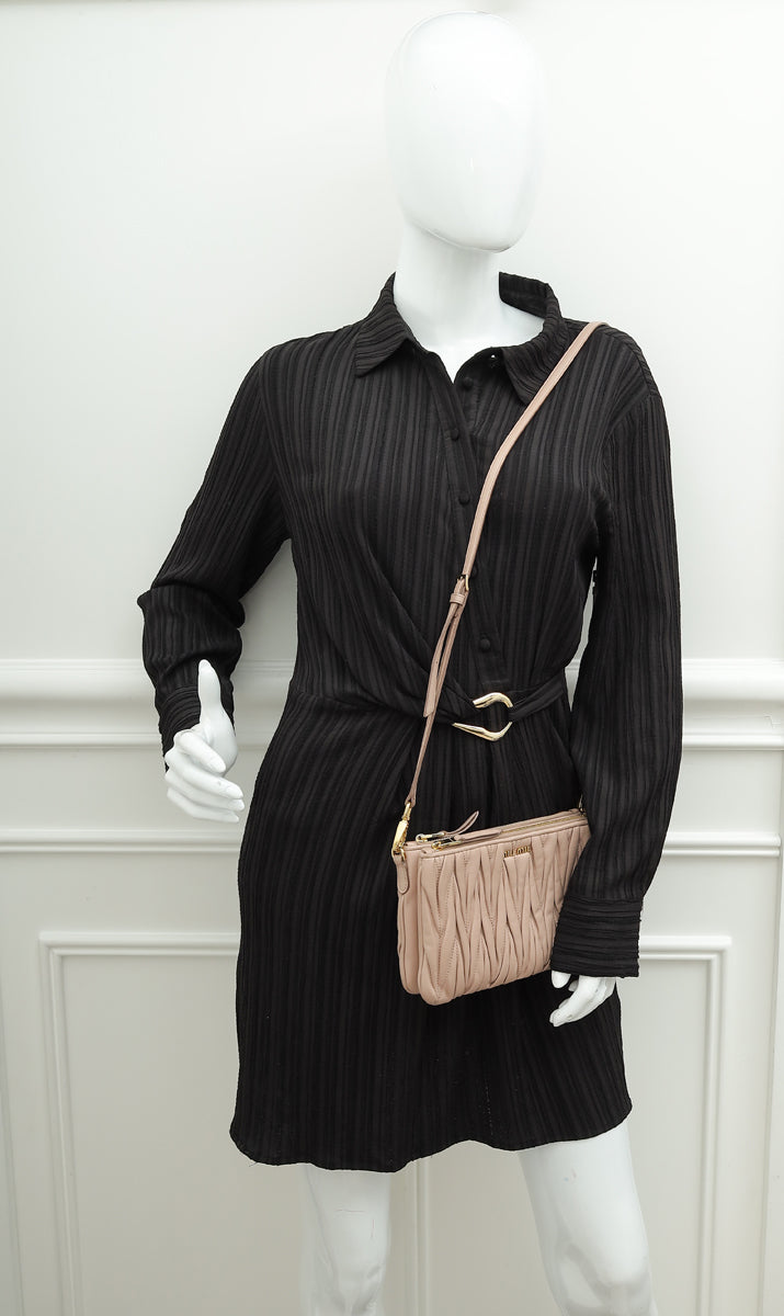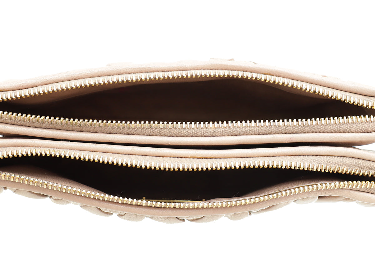 Miu Miu Nude Double Zip Matelassé Crossbody Bag