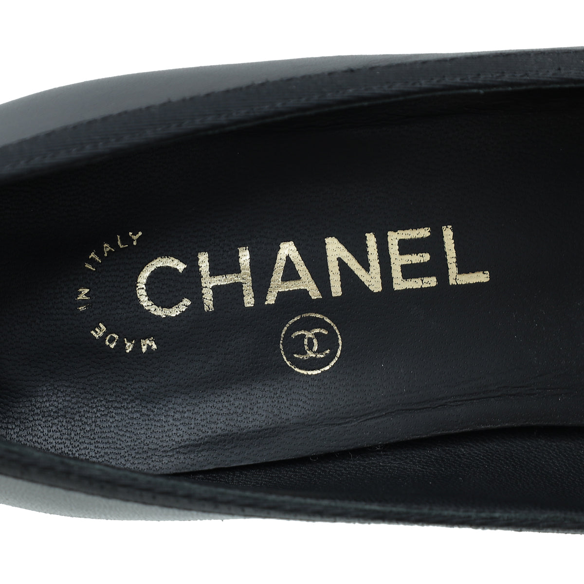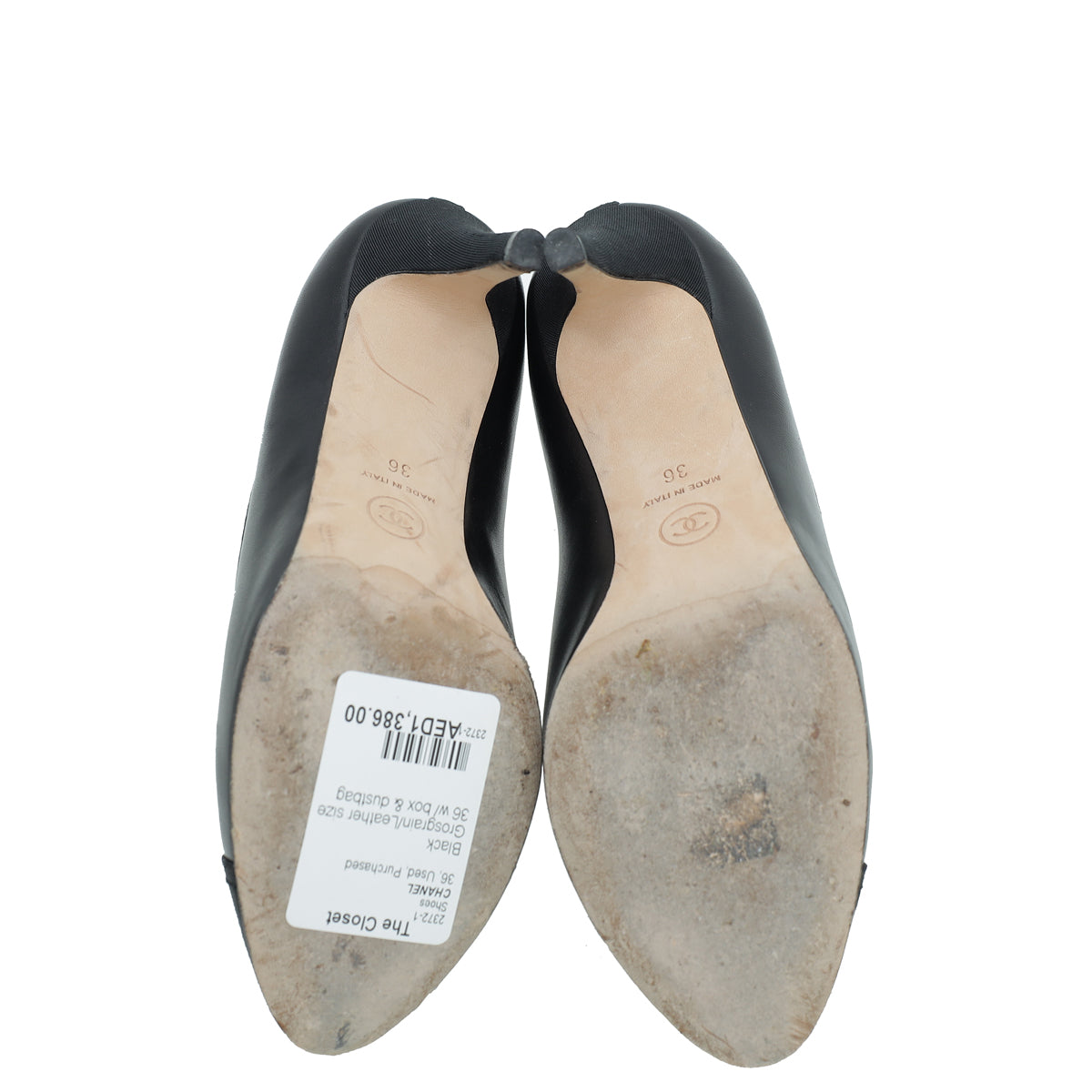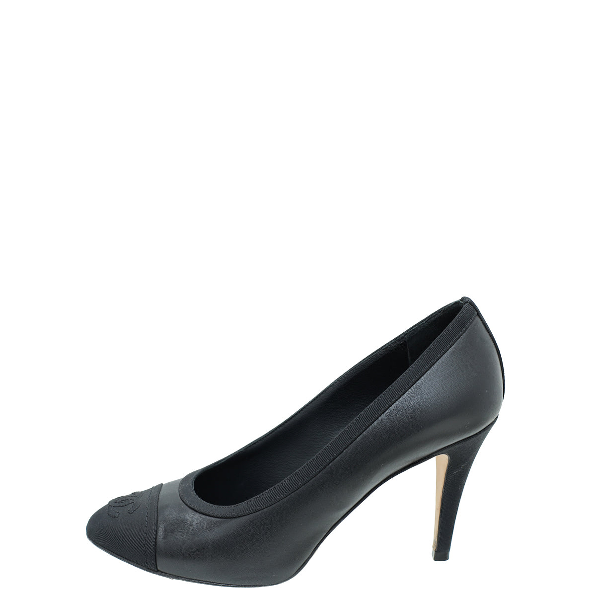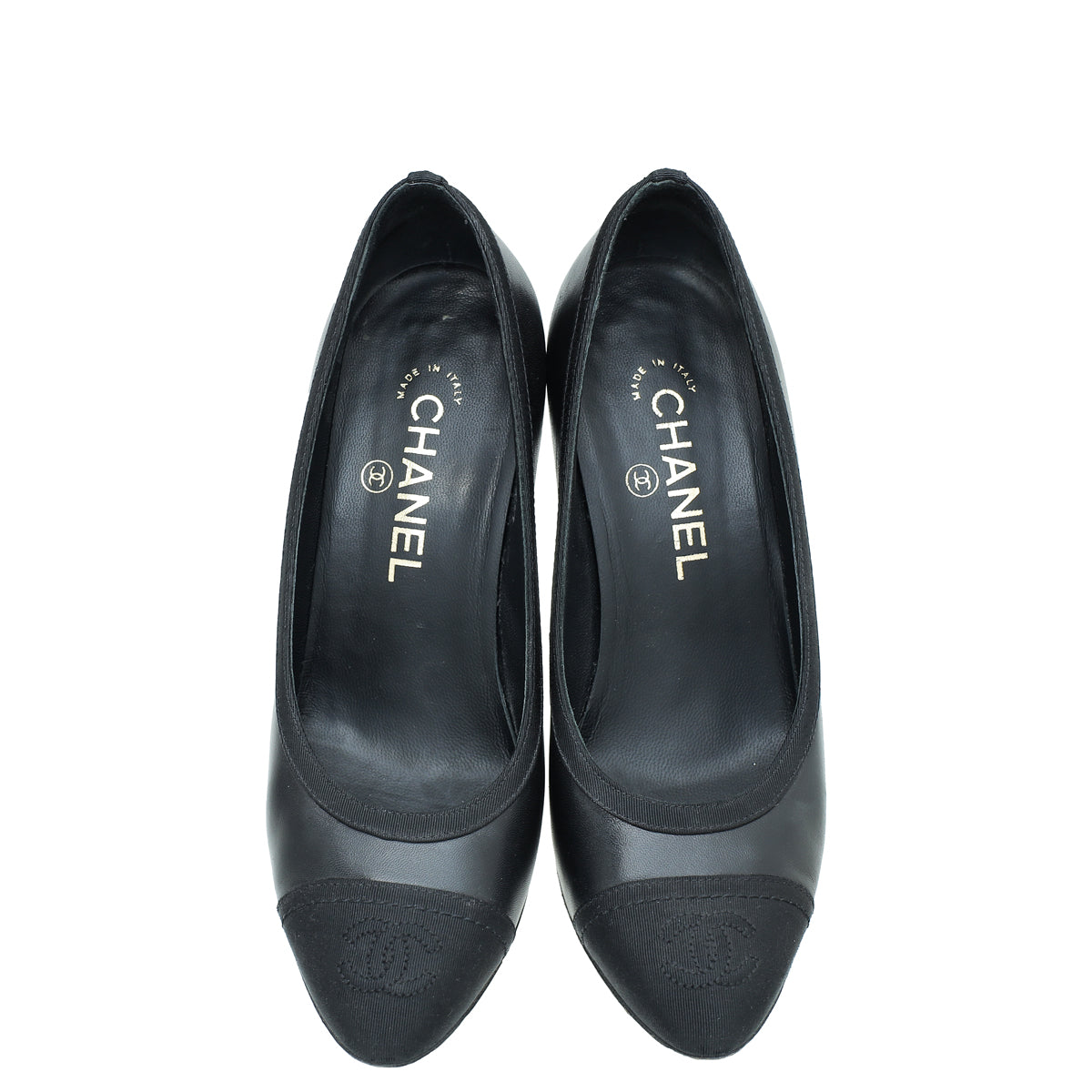 Chanel Black Cap Toe CC Pumps 36-Chanel-THE CLOSET