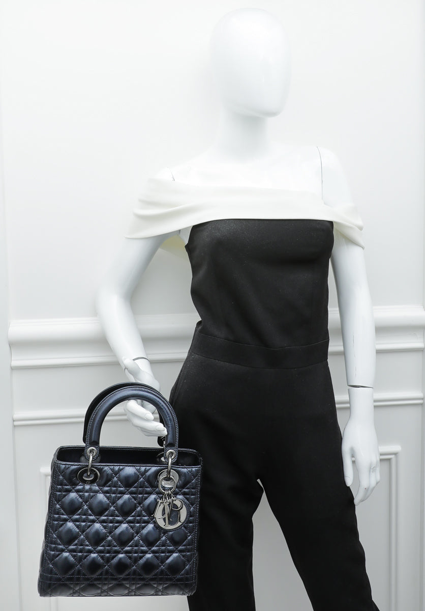 Christian Dior Navy Blue Lady Dior Pearly Medium Bag