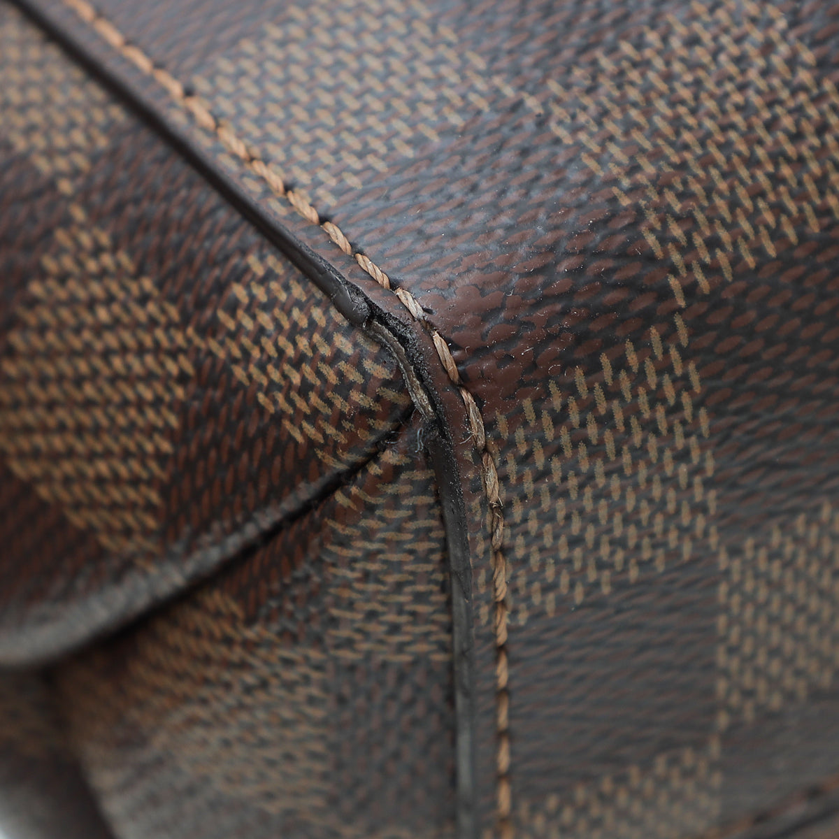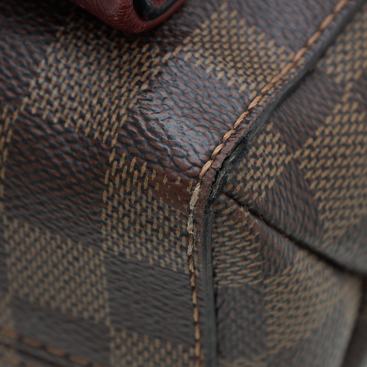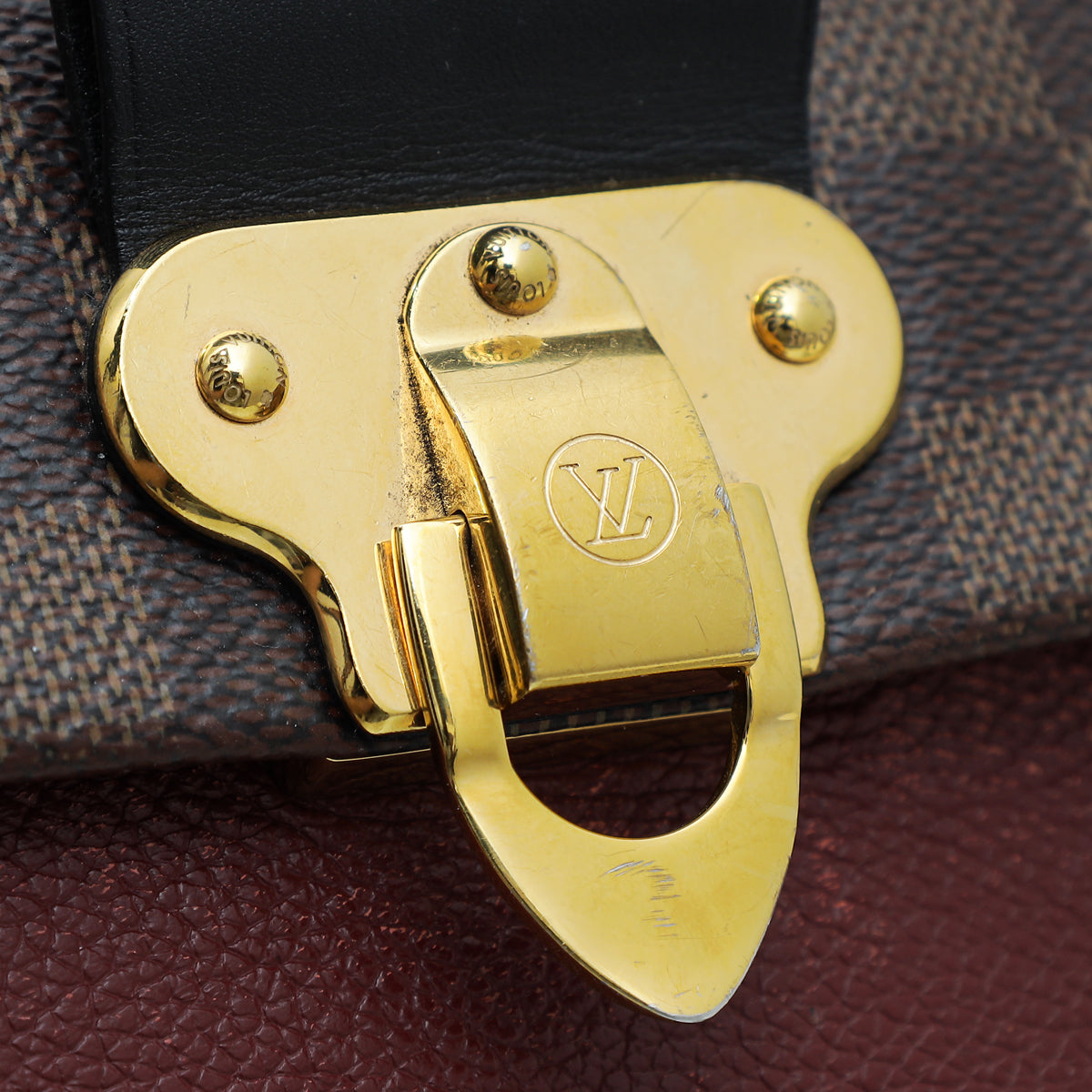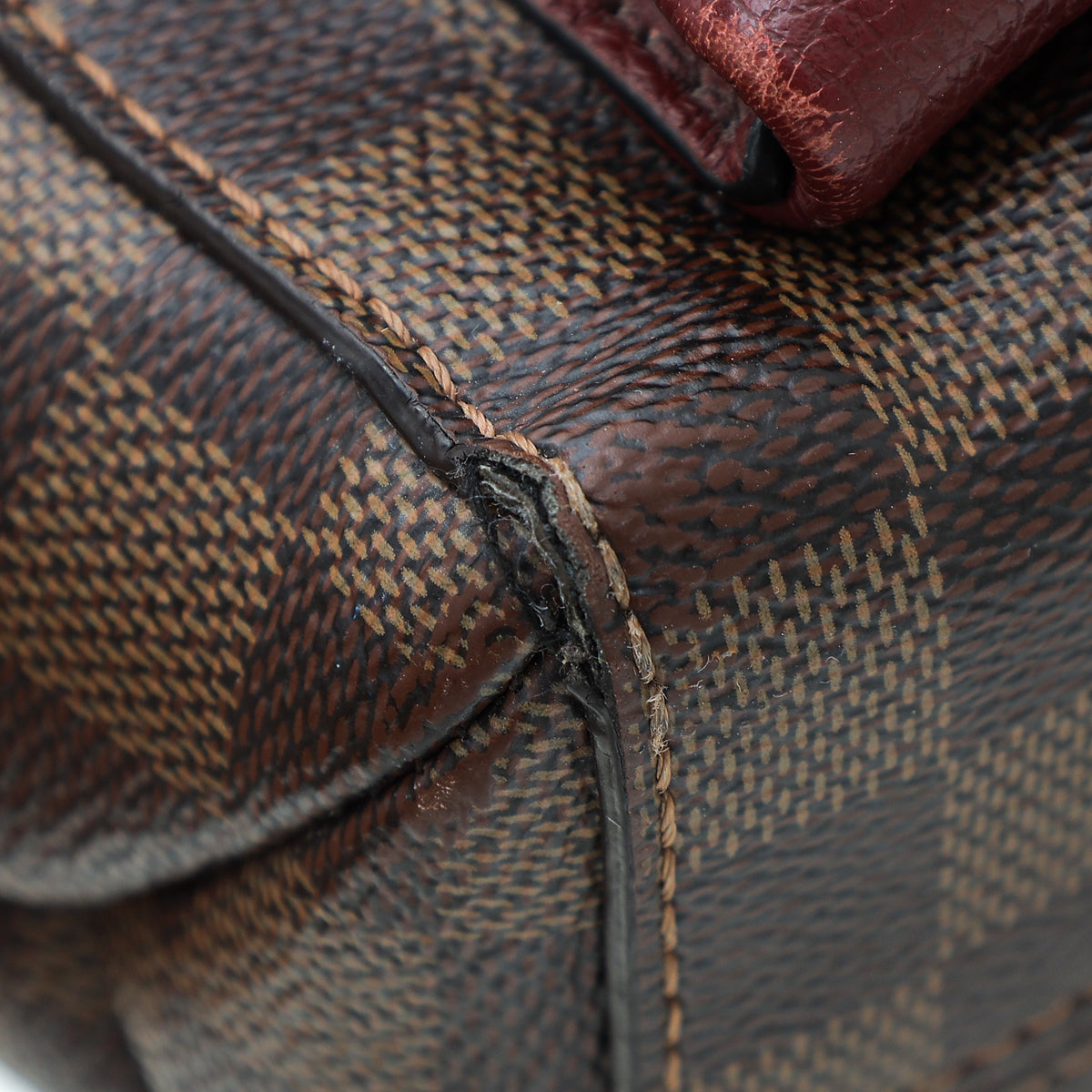 - Material: Damier Ebene Coated Canvas with Black and Bordeaux Leather Trim