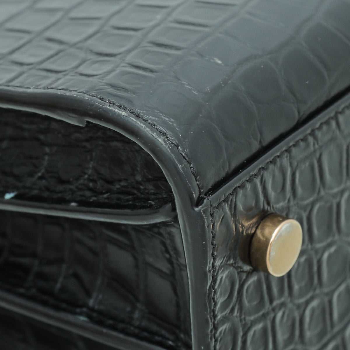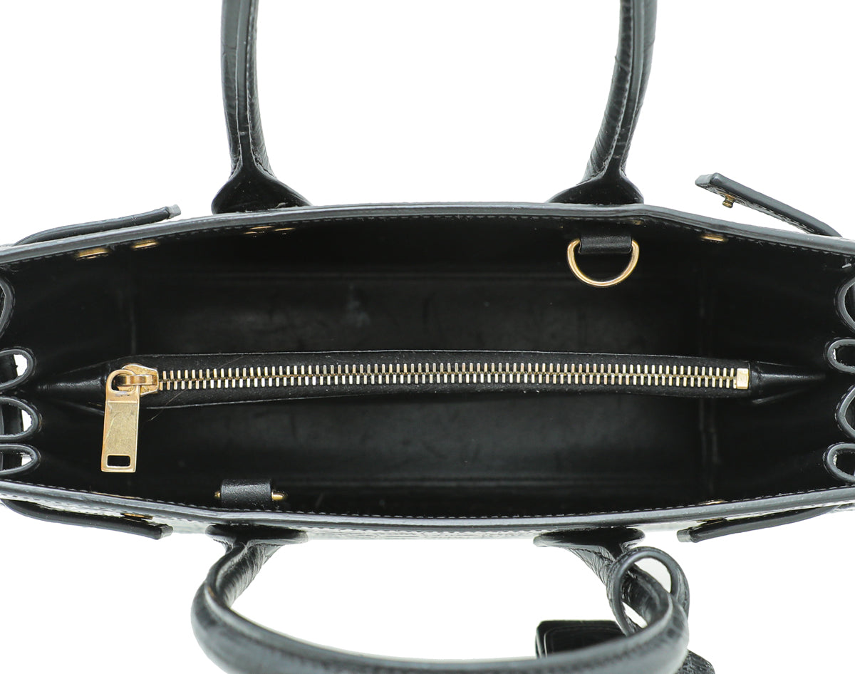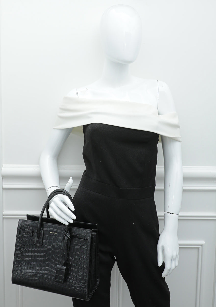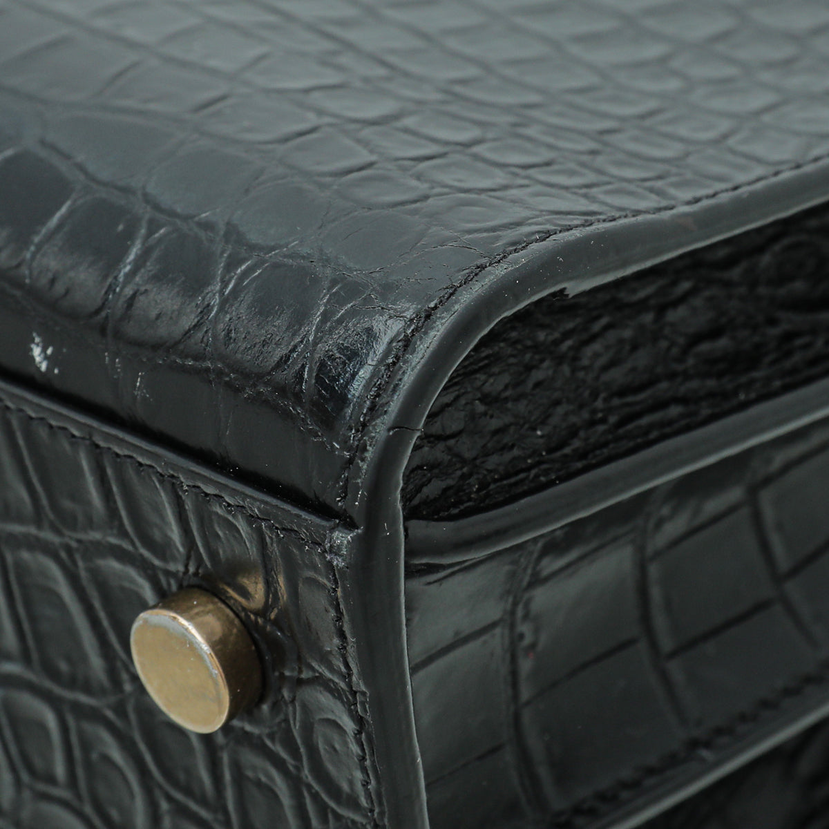 YSL Black Baby Croc Embossed Sac De Jour Bag
