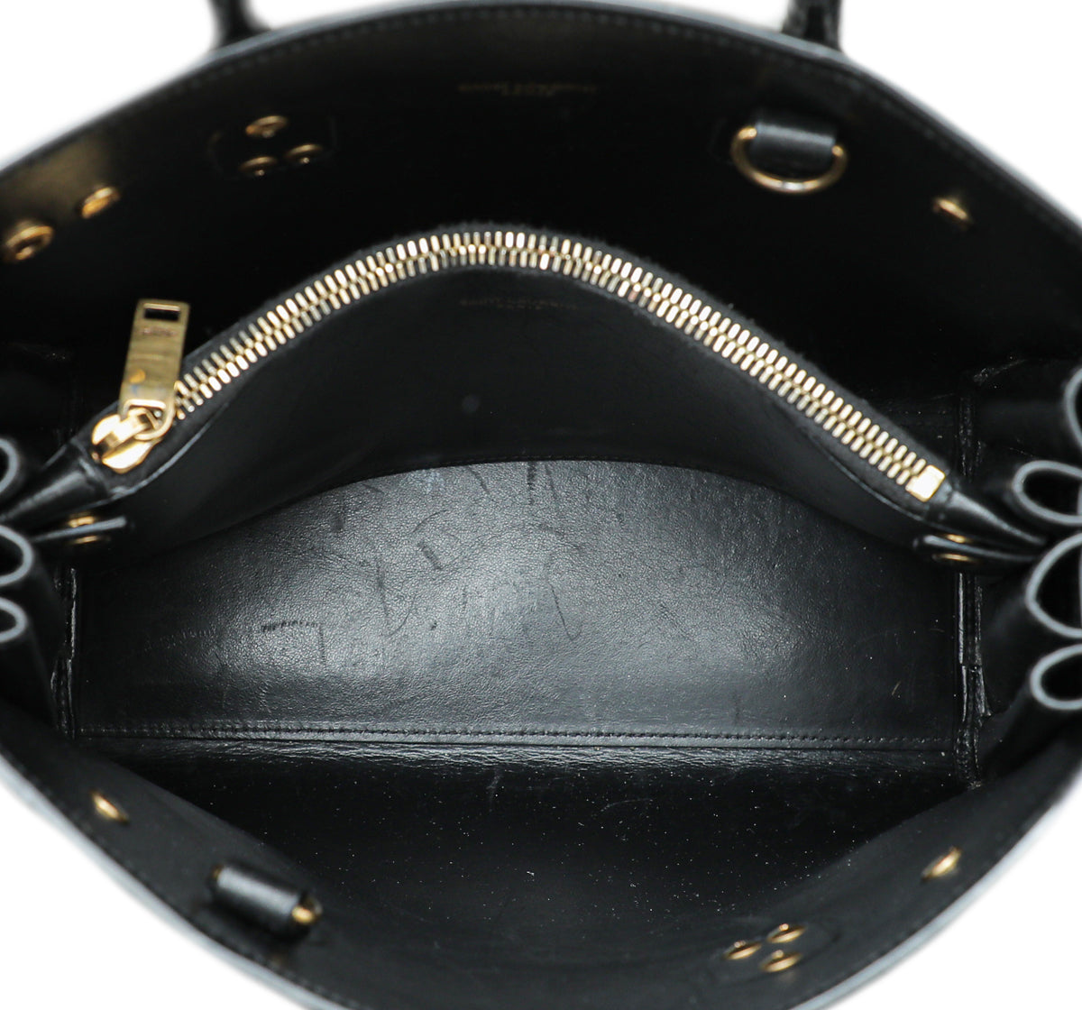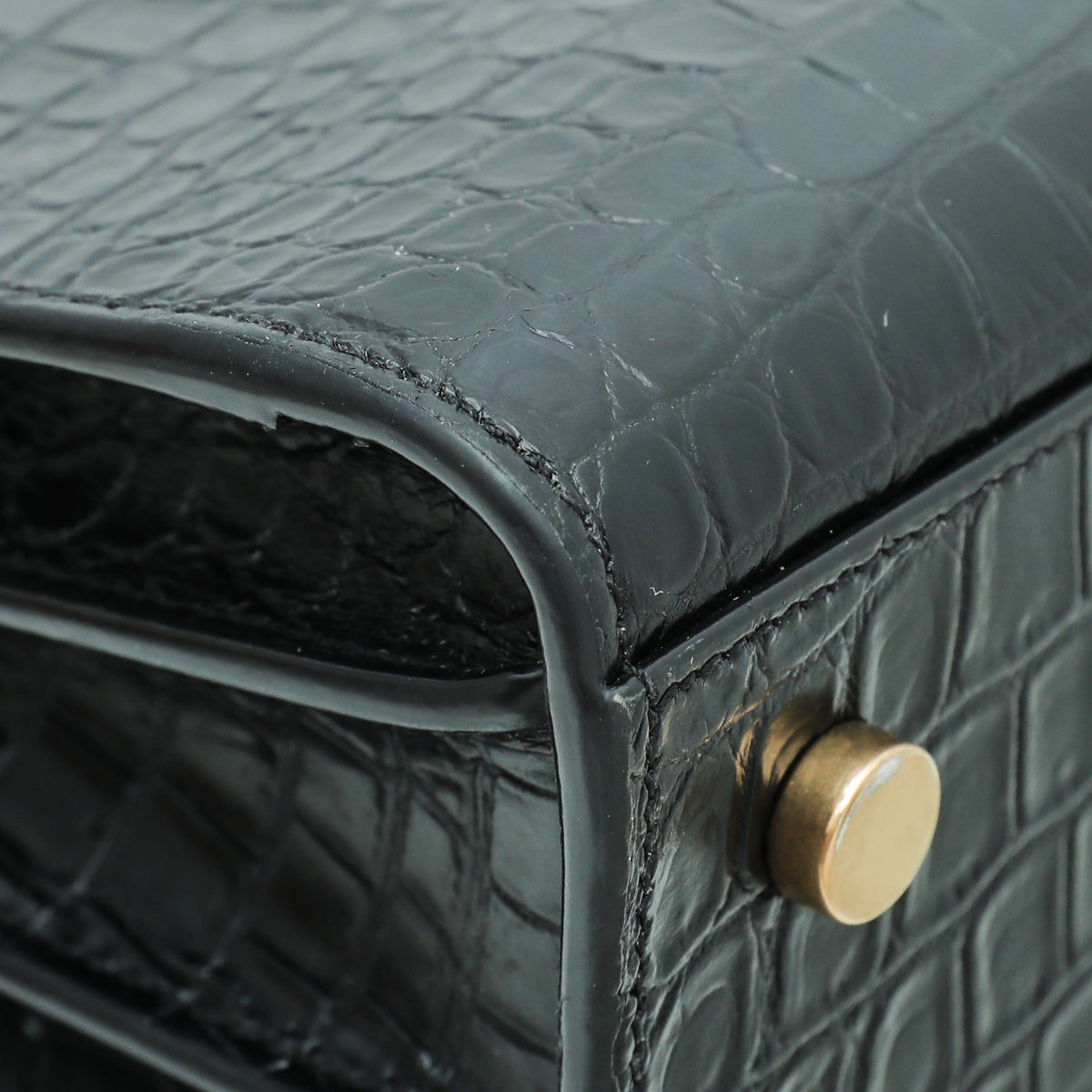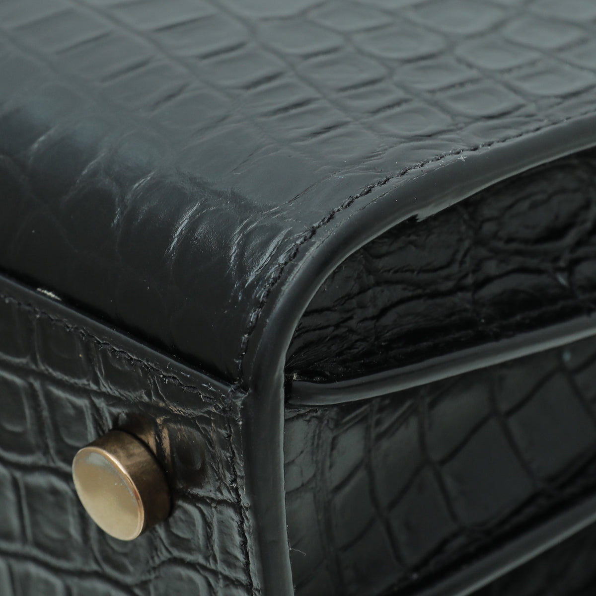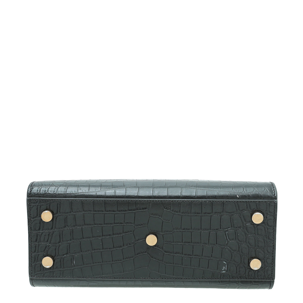 YSL Black Baby Croc Embossed Sac De Jour Bag