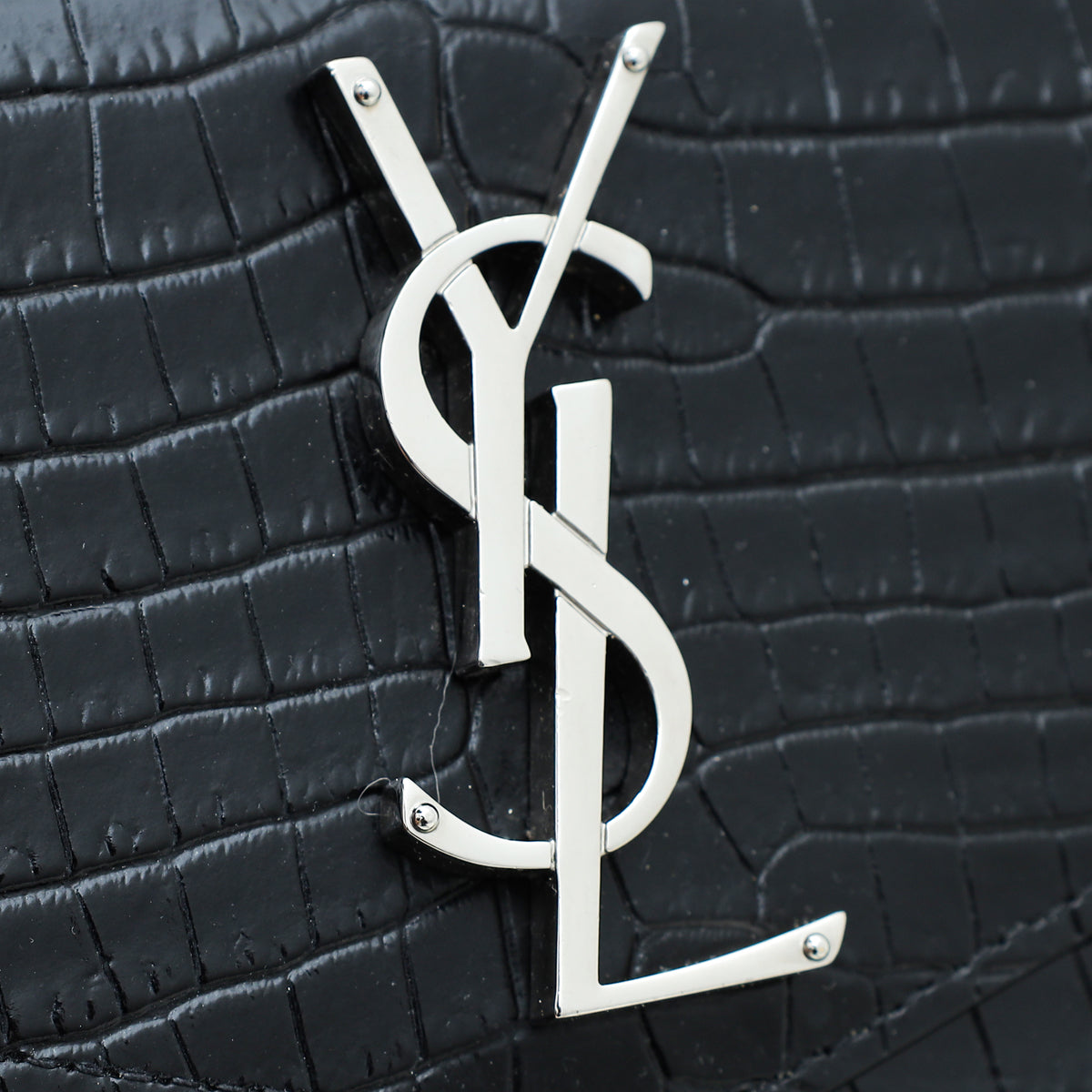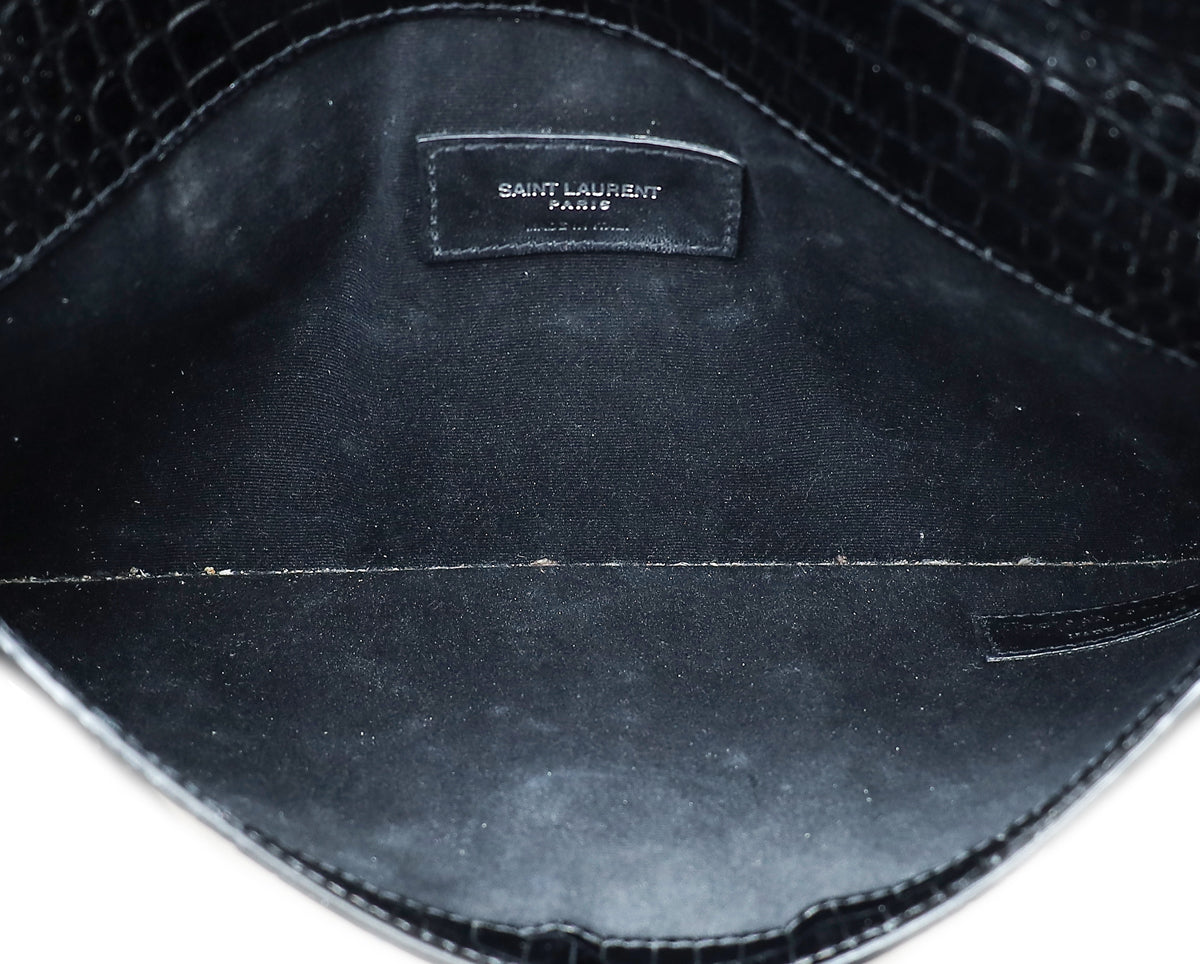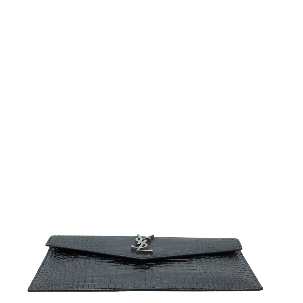 YSL Black Croco Embossed Uptown Clutch-YSL-THE CLOSET