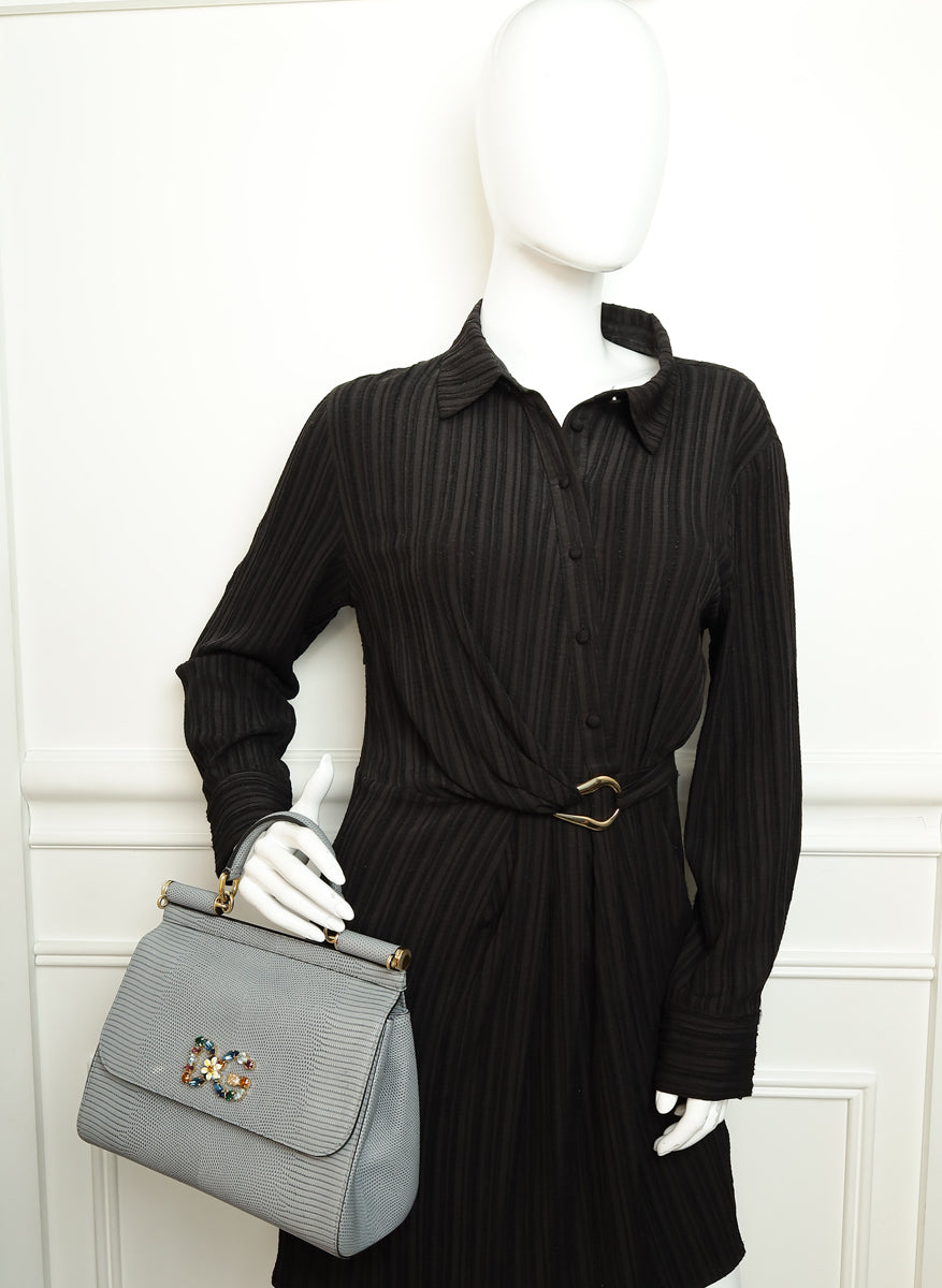 Dolce & Gabbana Light Gray DG Crystal Medium Sicily Bag