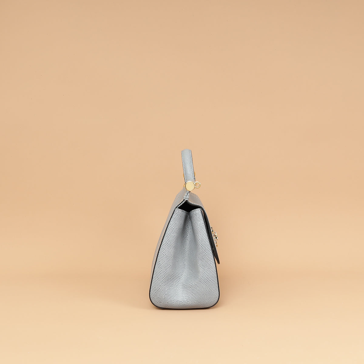 Material: Lizard Embossed Leather with Multicolor Stones DG, Enamel Flower