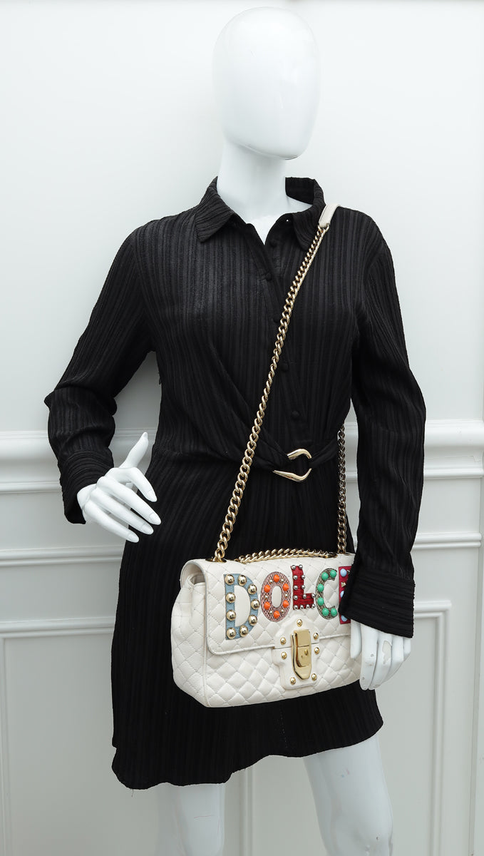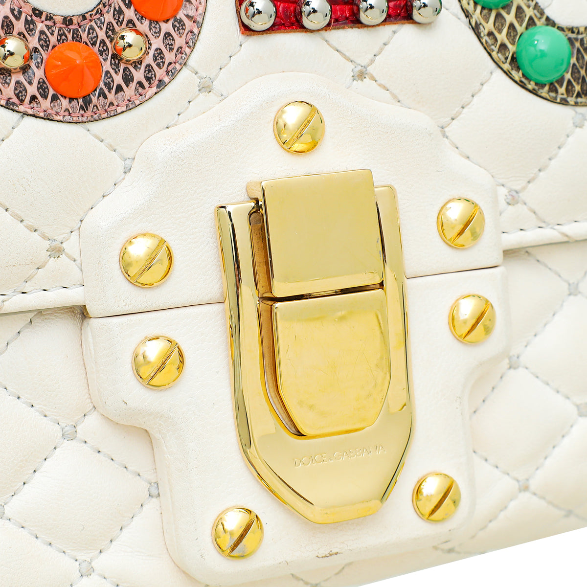 Dolce & Gabbana White Multicolor "Dolce" Studded Lucia Bag