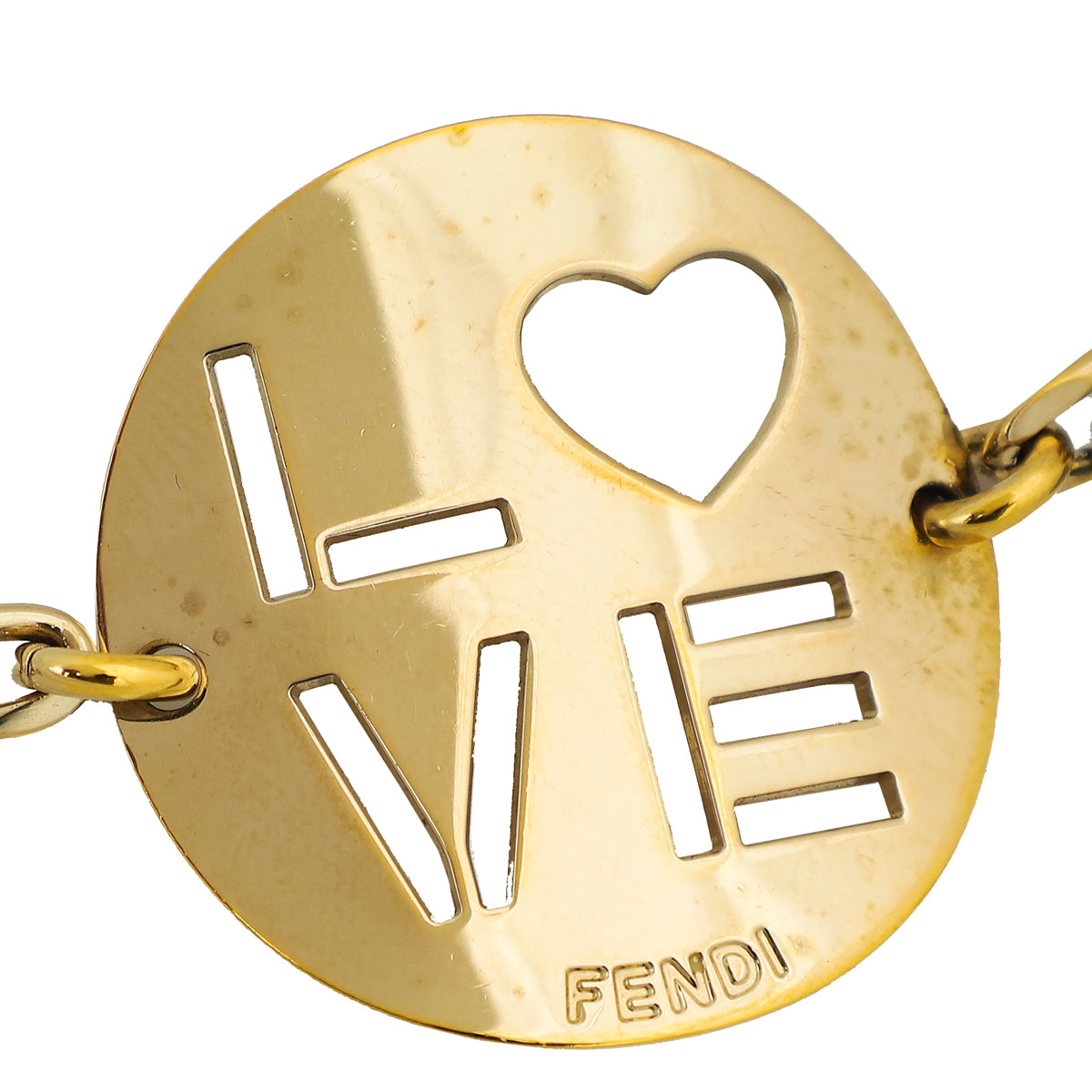 Fendi Gold Finish "Love - You" Charms Bracelet