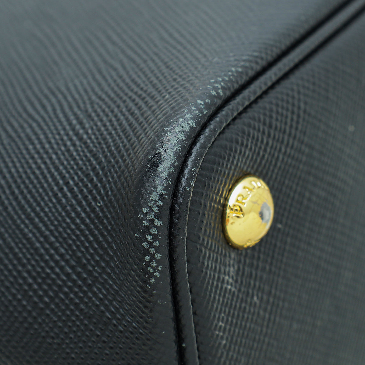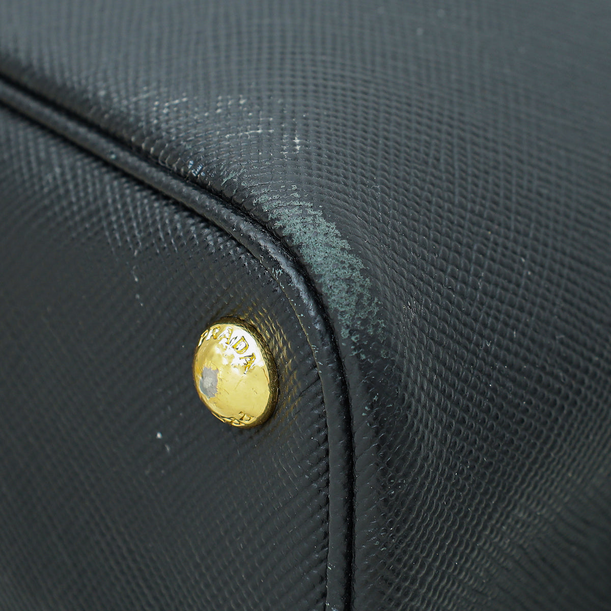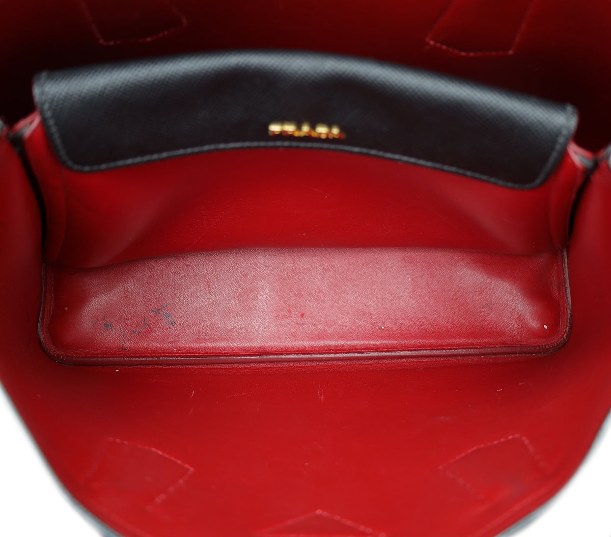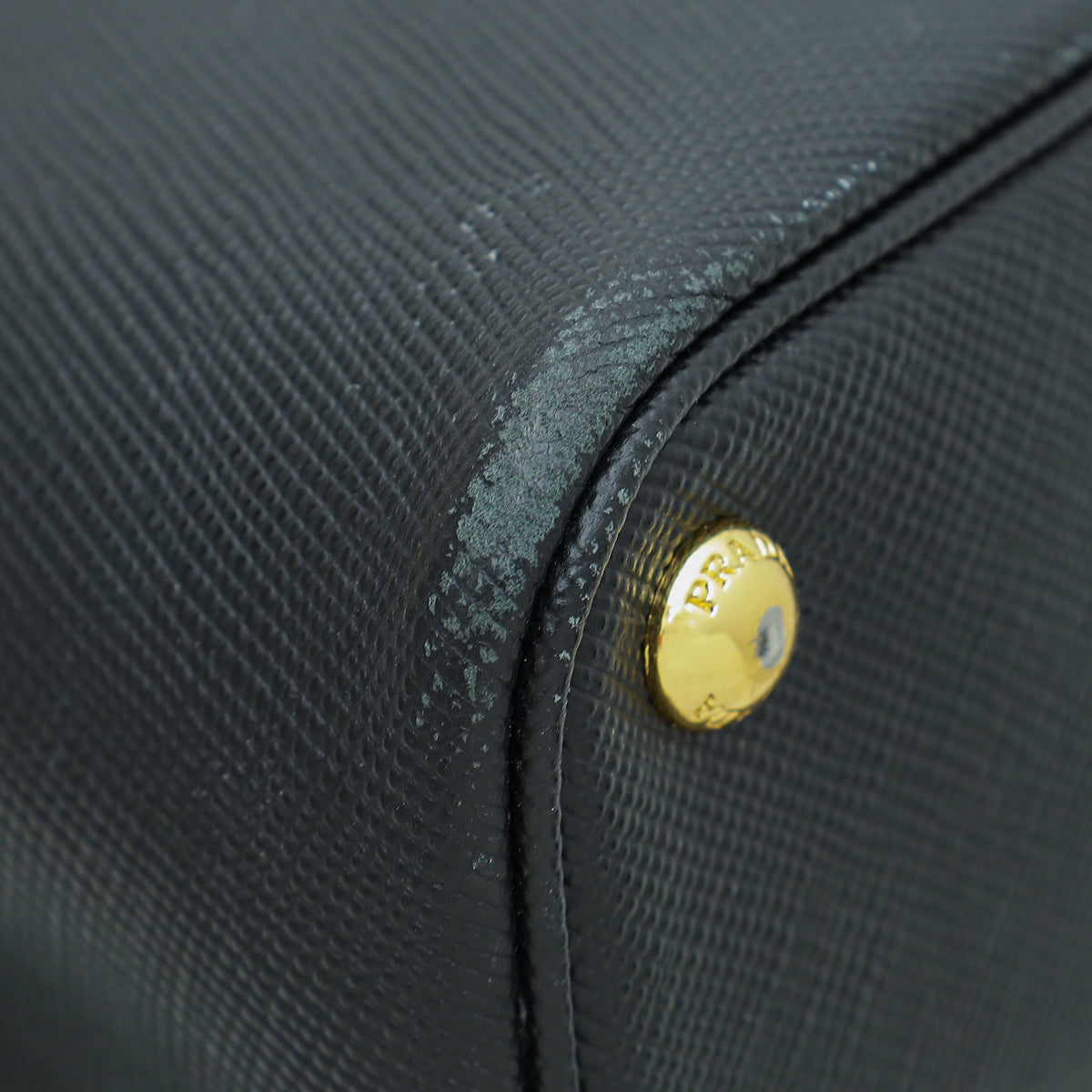 Exterior: good condition, with scratches on the hardware, corners, few spots on leather and showing normal signs of use.