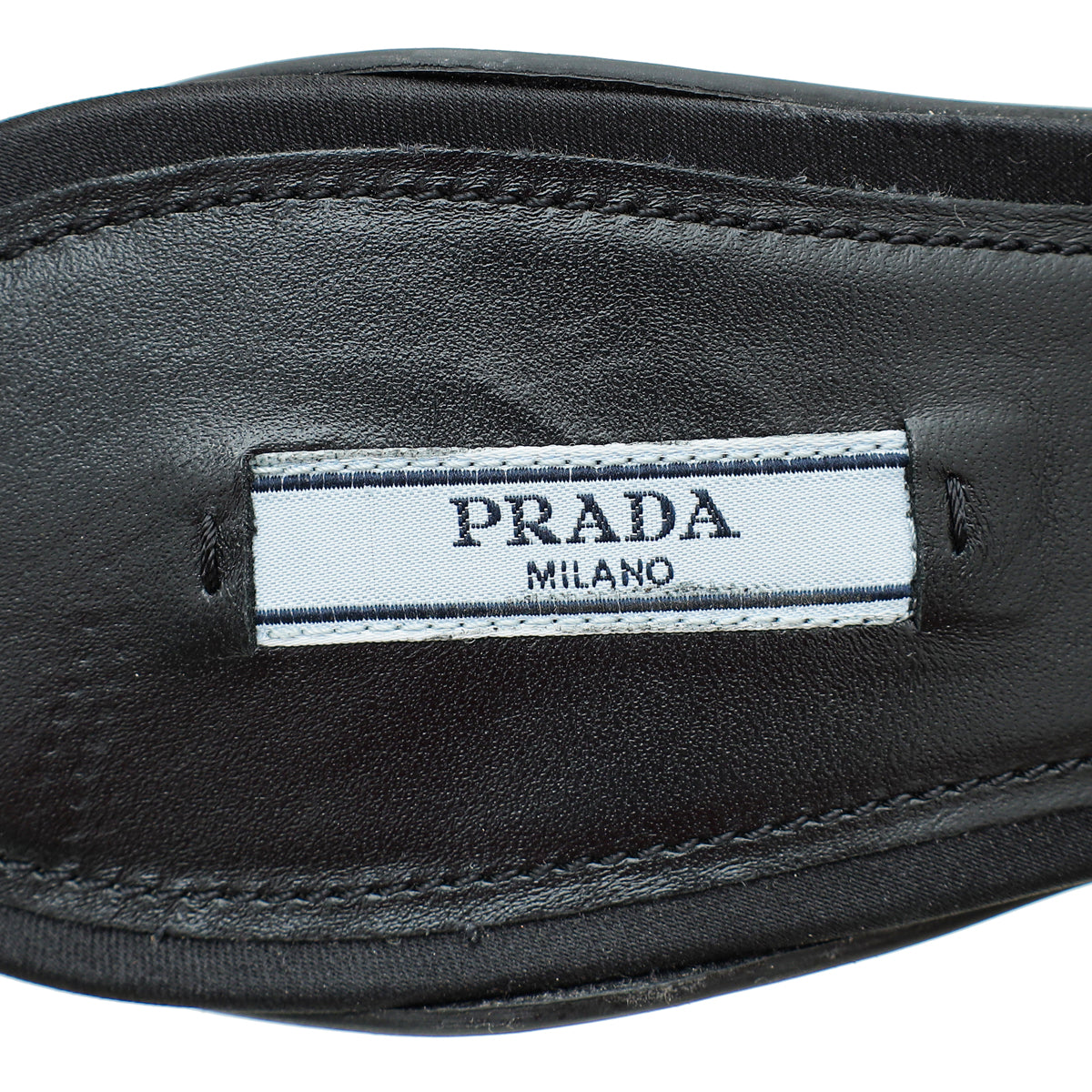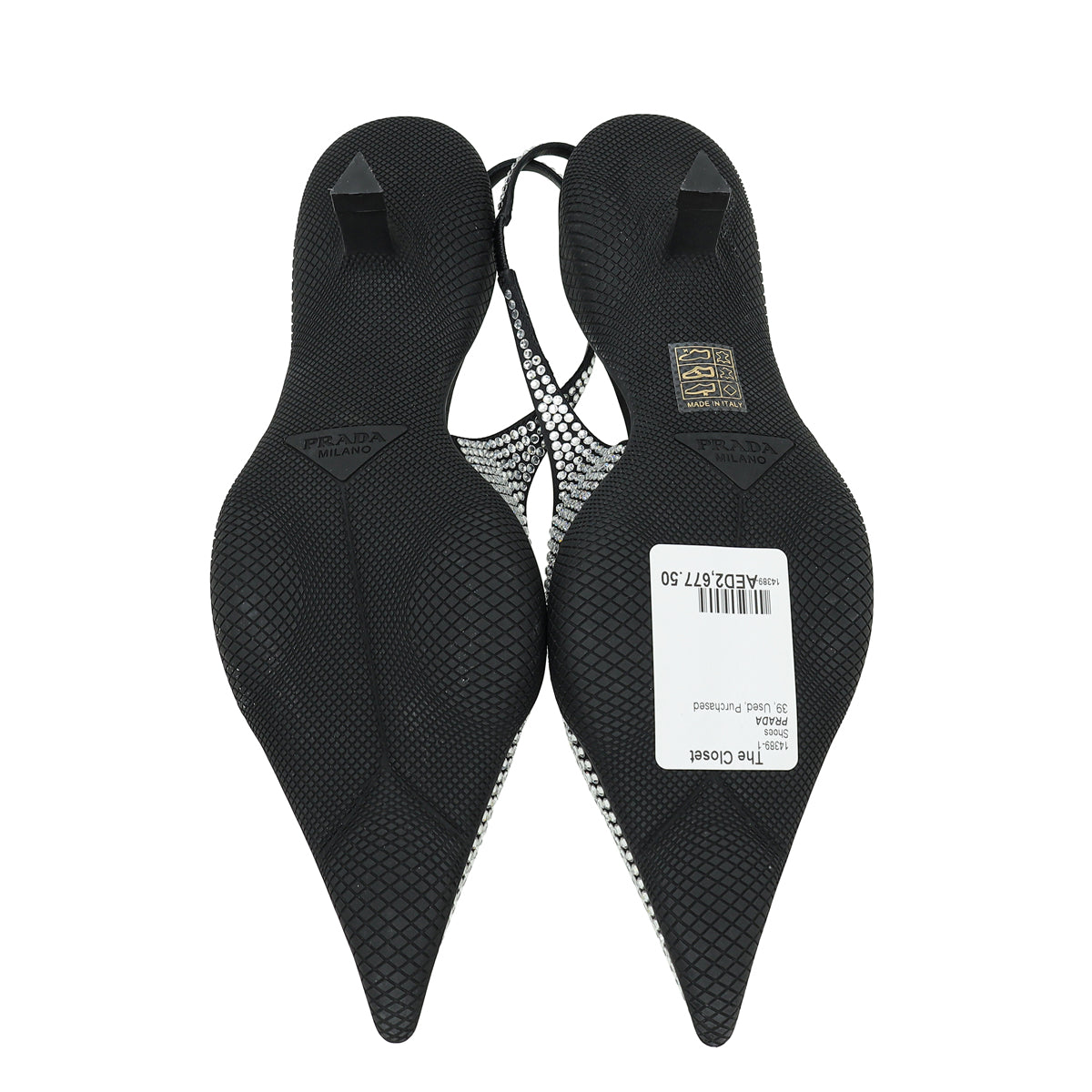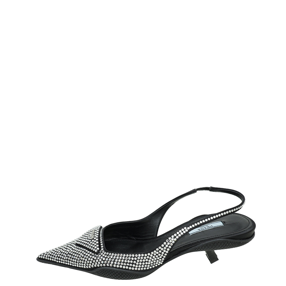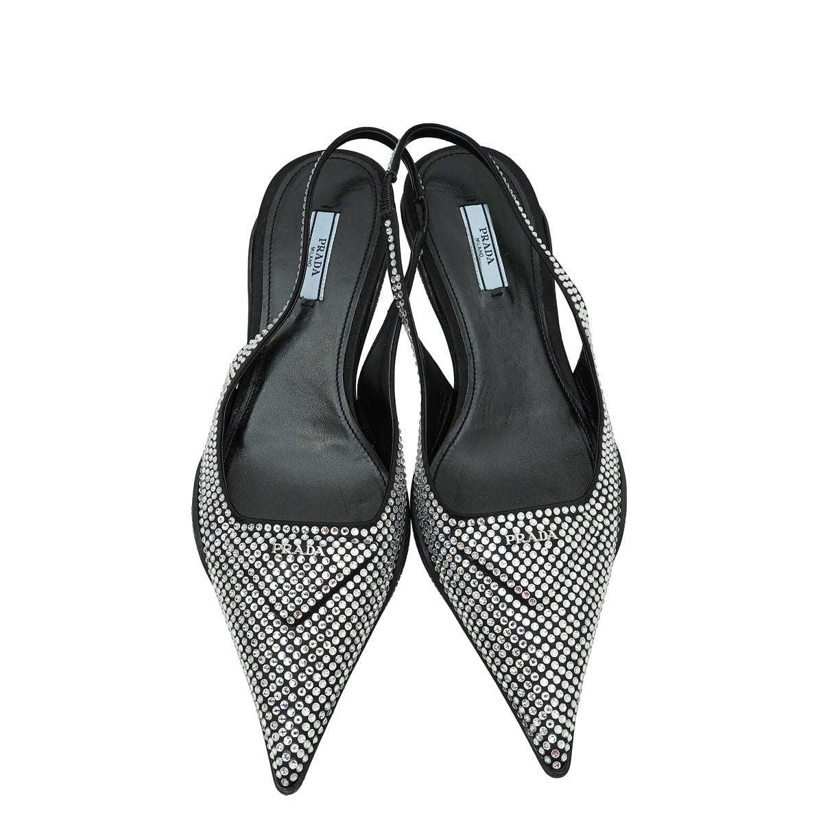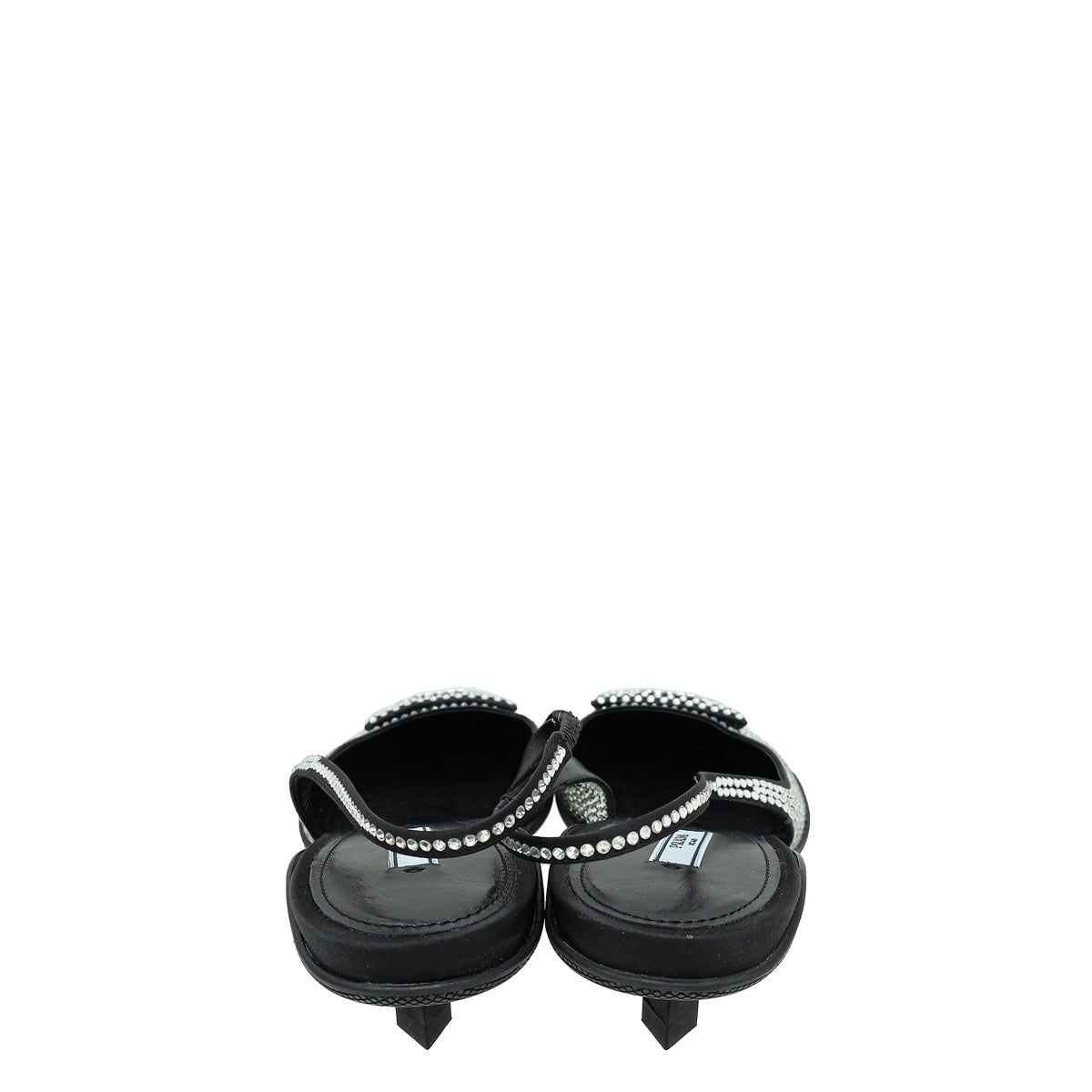 Prada Black Logo Satin Crystal Slingback Pump 39