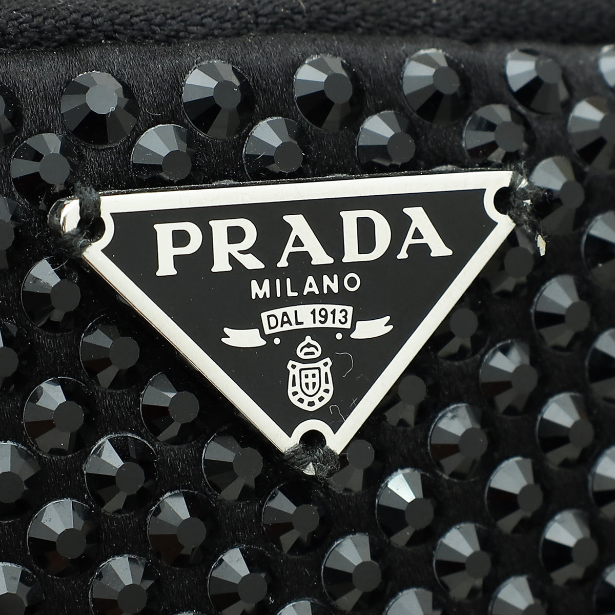 Prada Black Satin Crystal Zip Phone Case Crossbody Bag-Prada-THE CLOSET