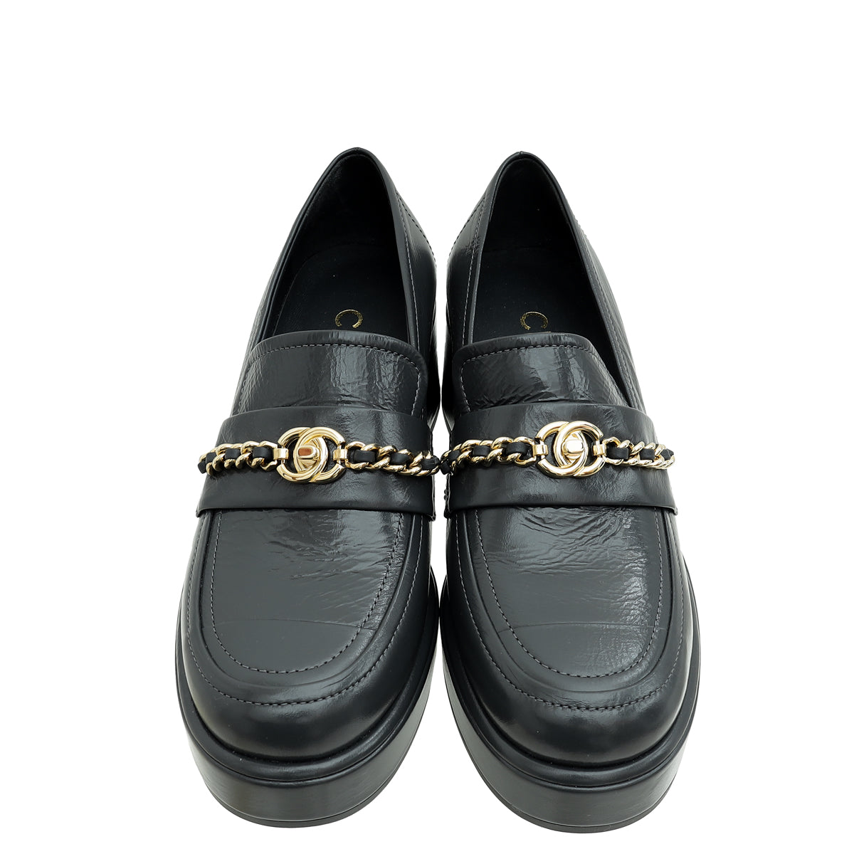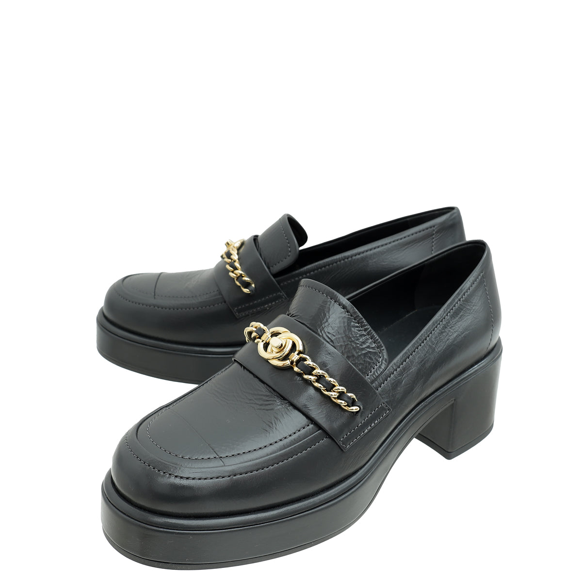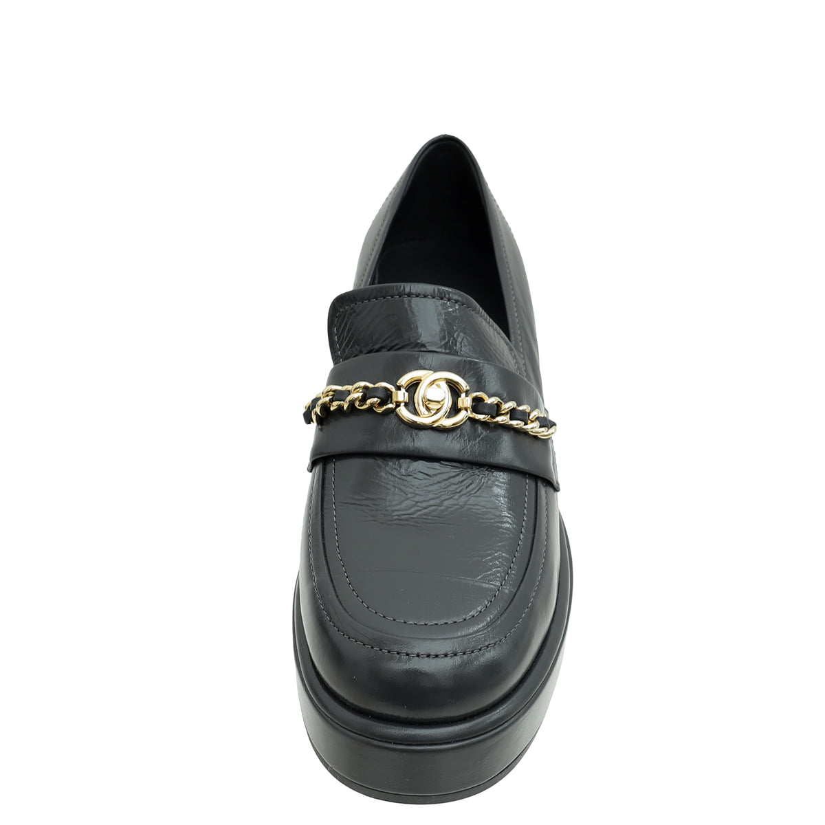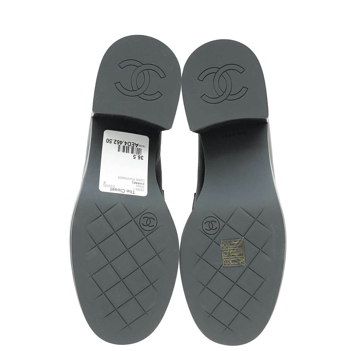 Chanel Grey CC Lock Chain Moccasins 36.5
