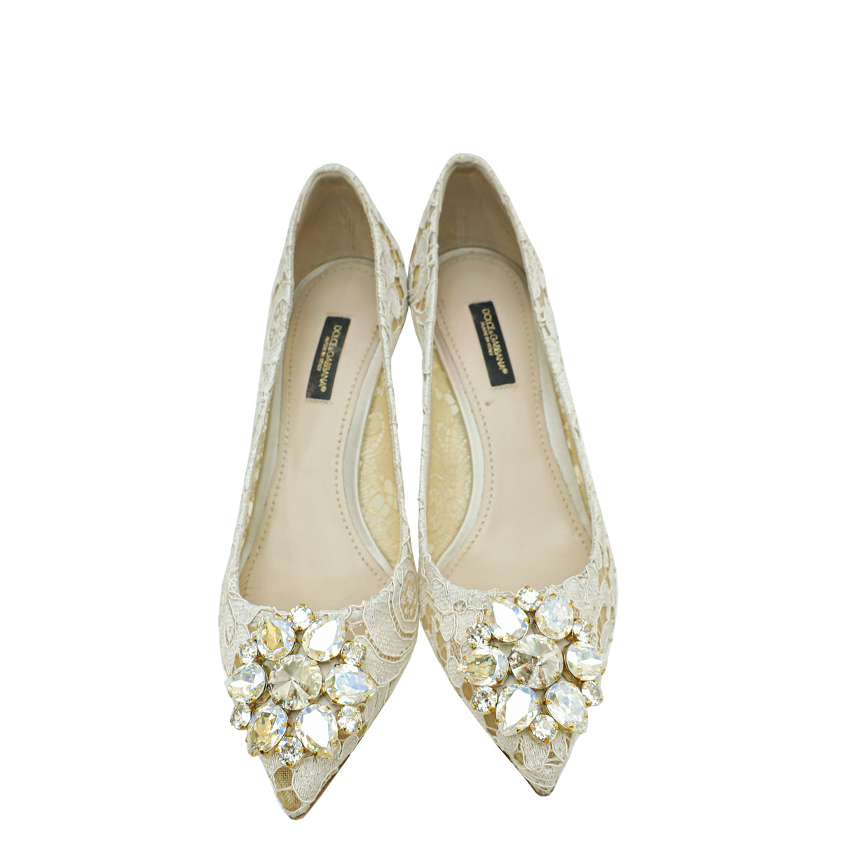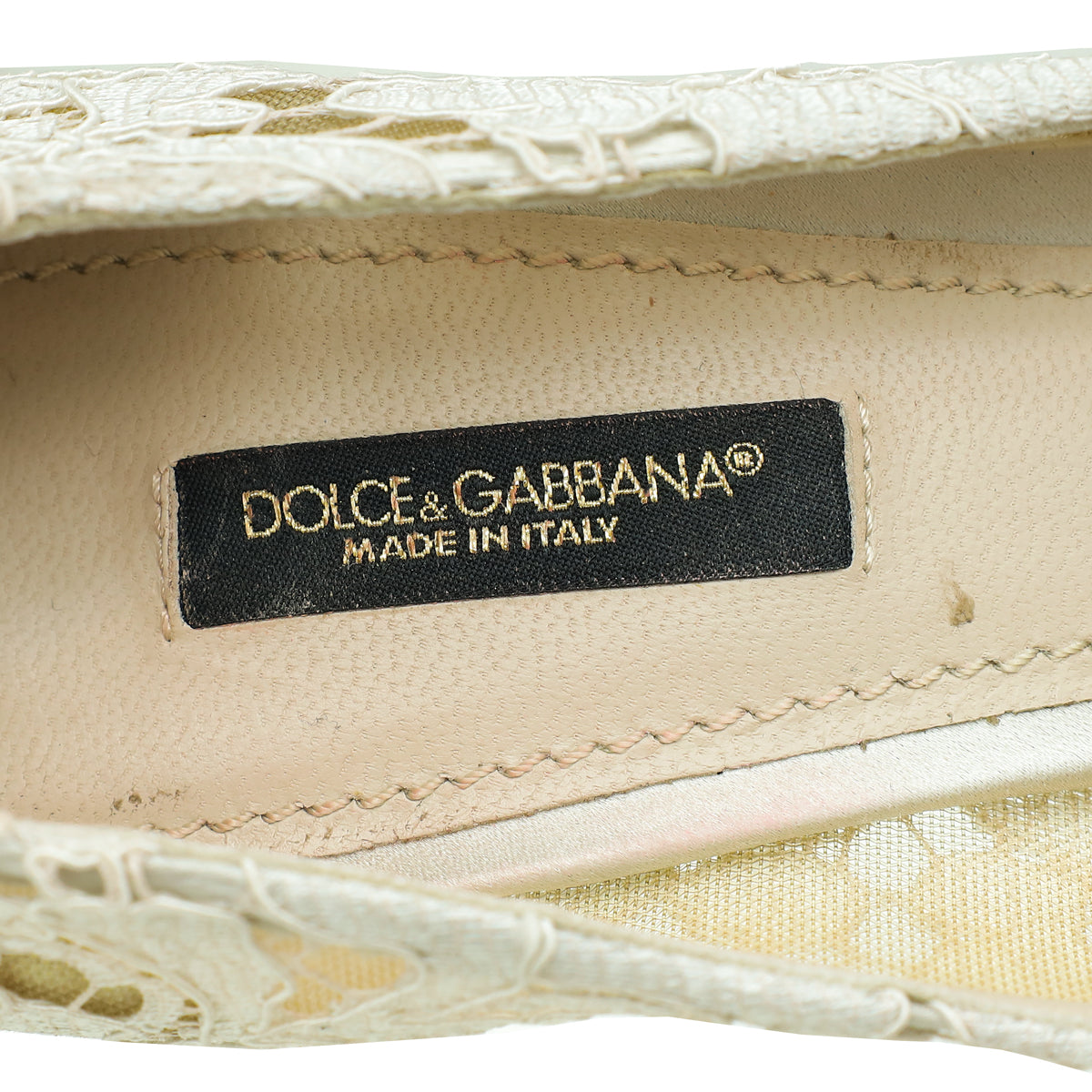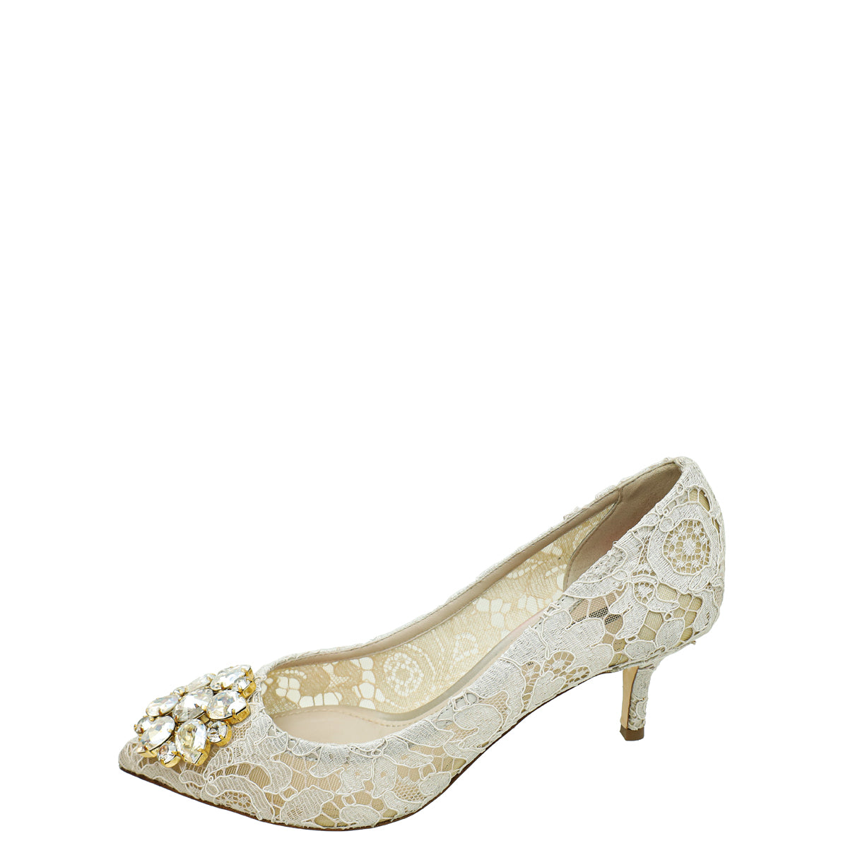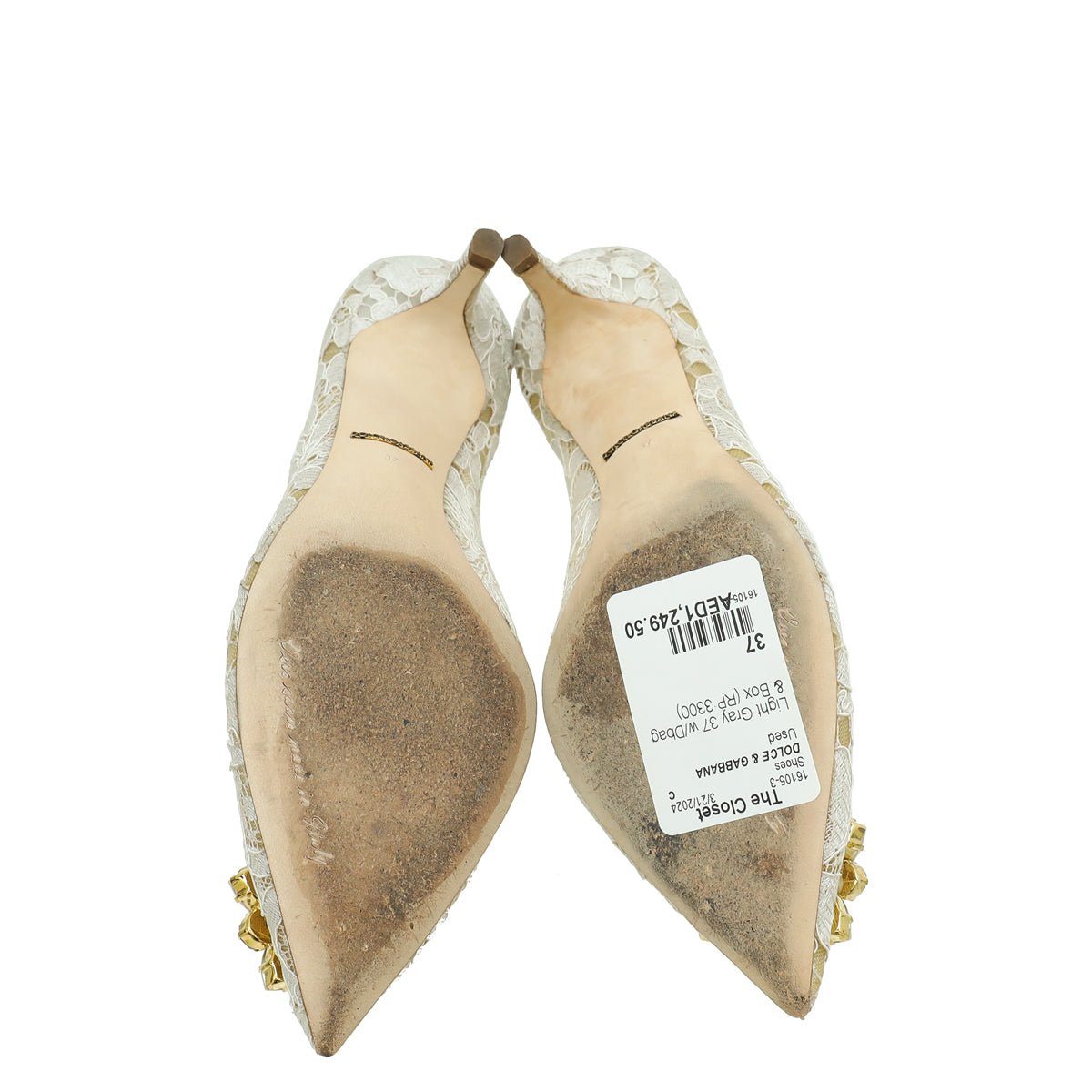 Dolce & Gabbana Light Grey Lace Bellucci Pump 37-Dolce & Gabbana-THE CLOSET