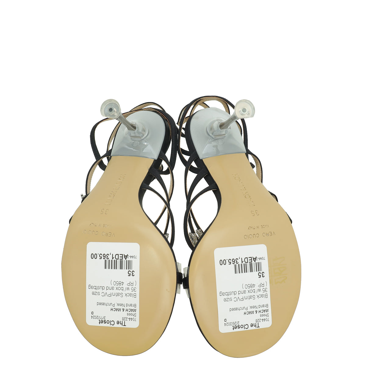 Mach & Mach Black Queen Heeled Ankle Strap Sandal 35