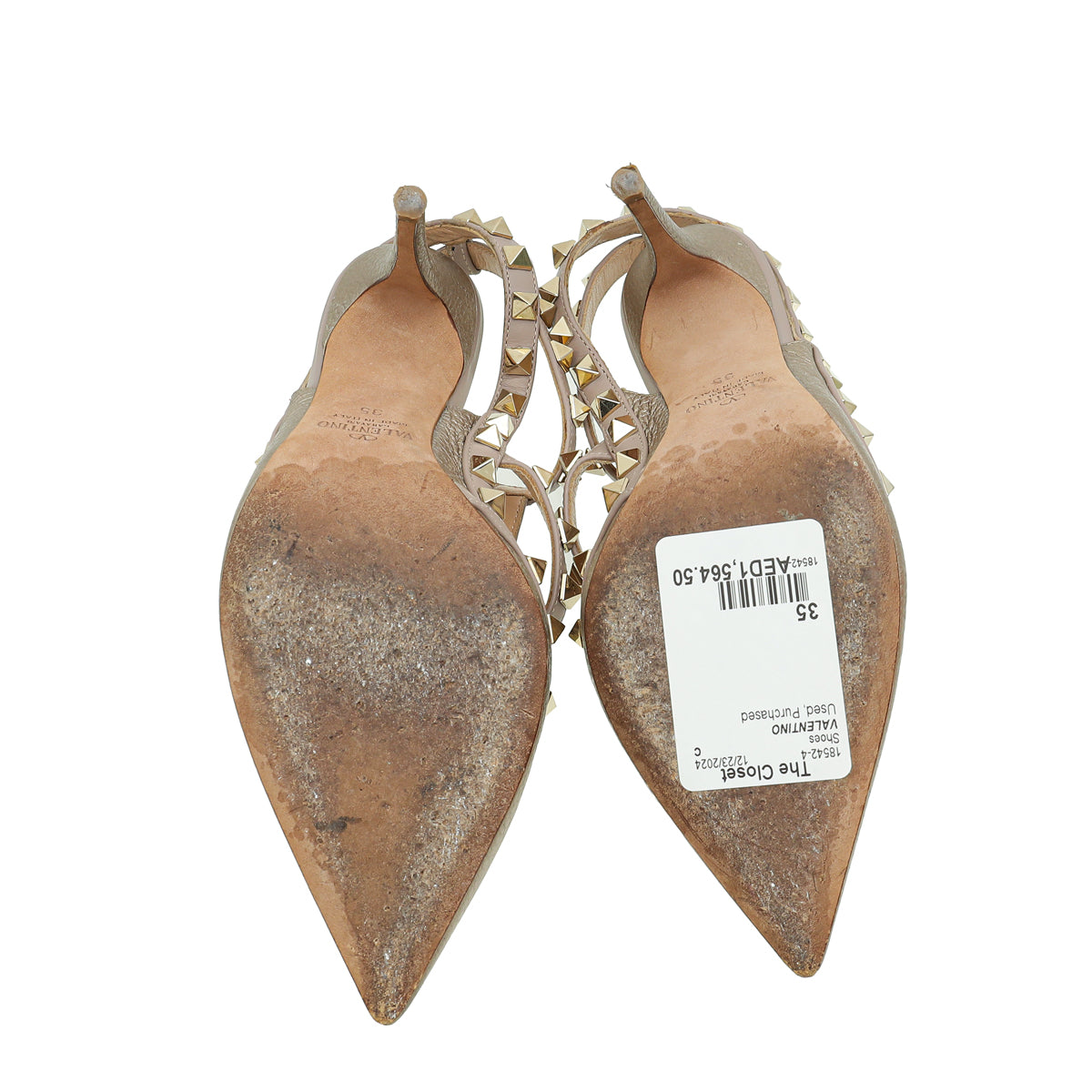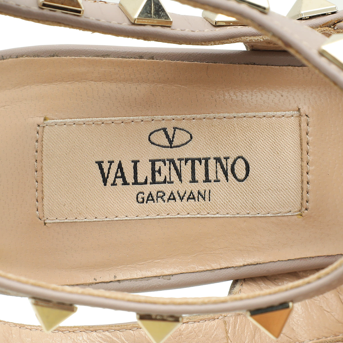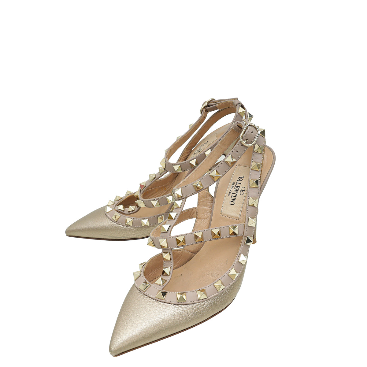 Valentino Champaign Rockstud Caged Ankle Strap Pump 35