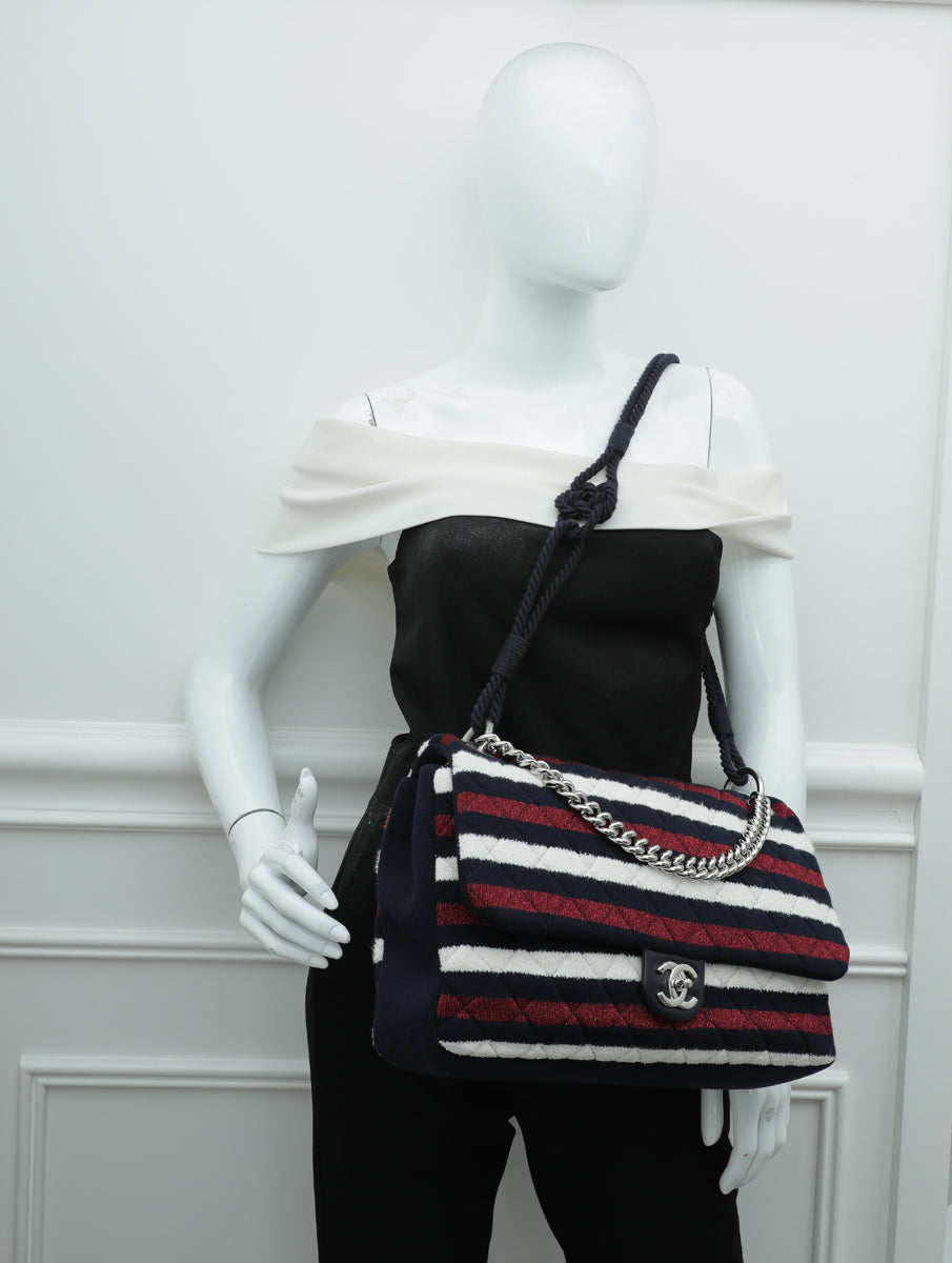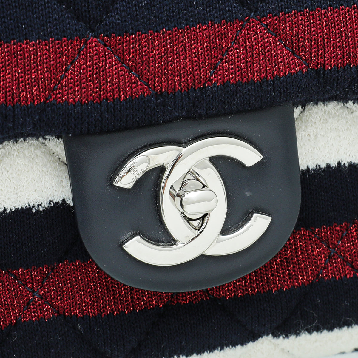 Chanel Tricolor Jersey Rope Flap Large Bag