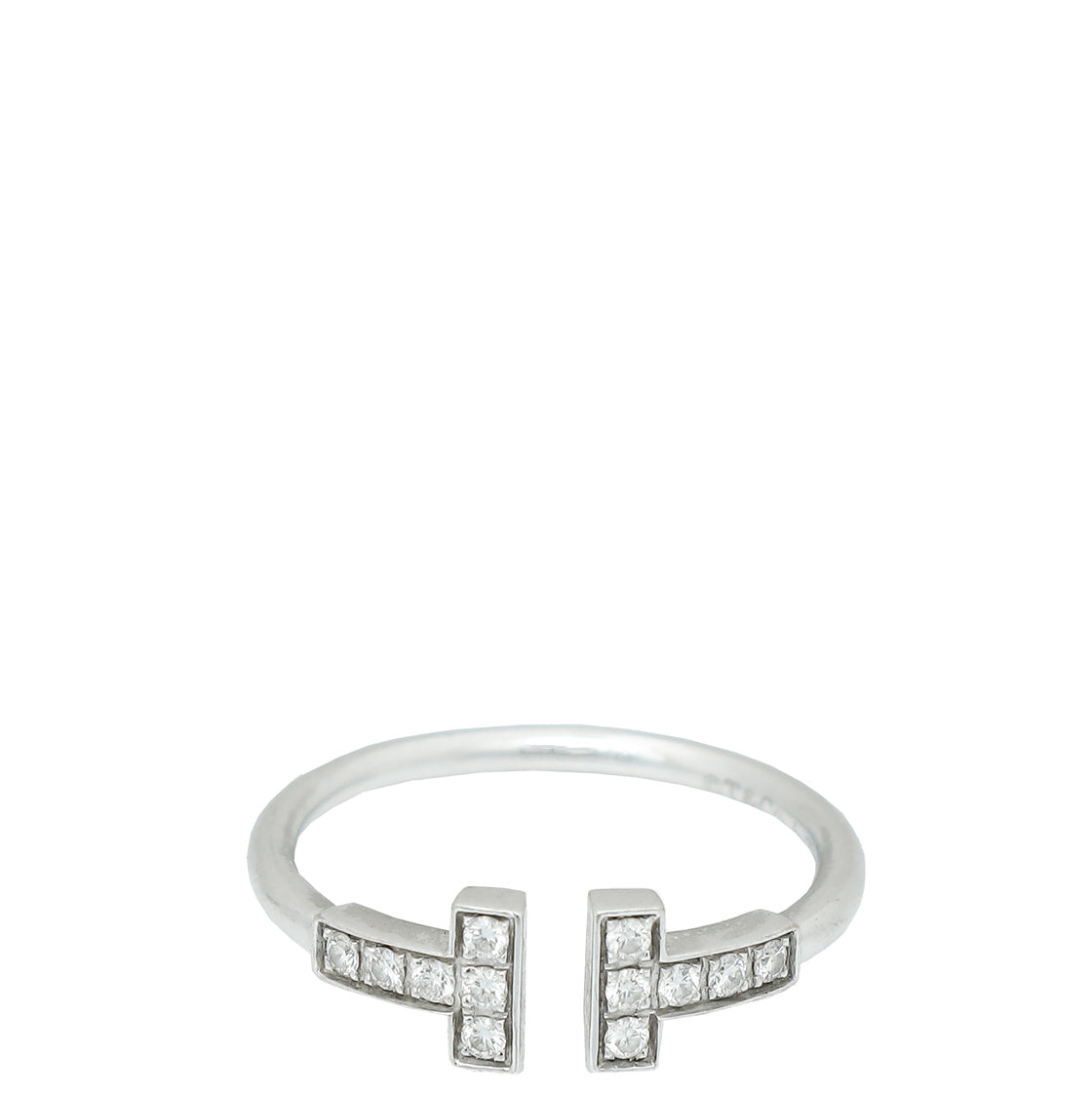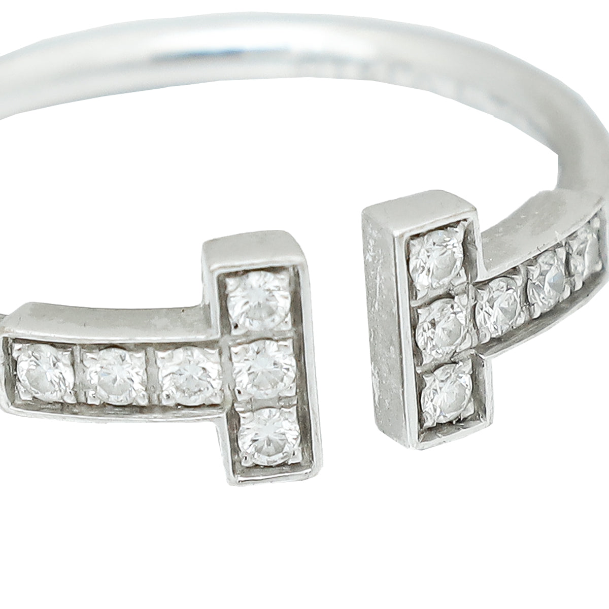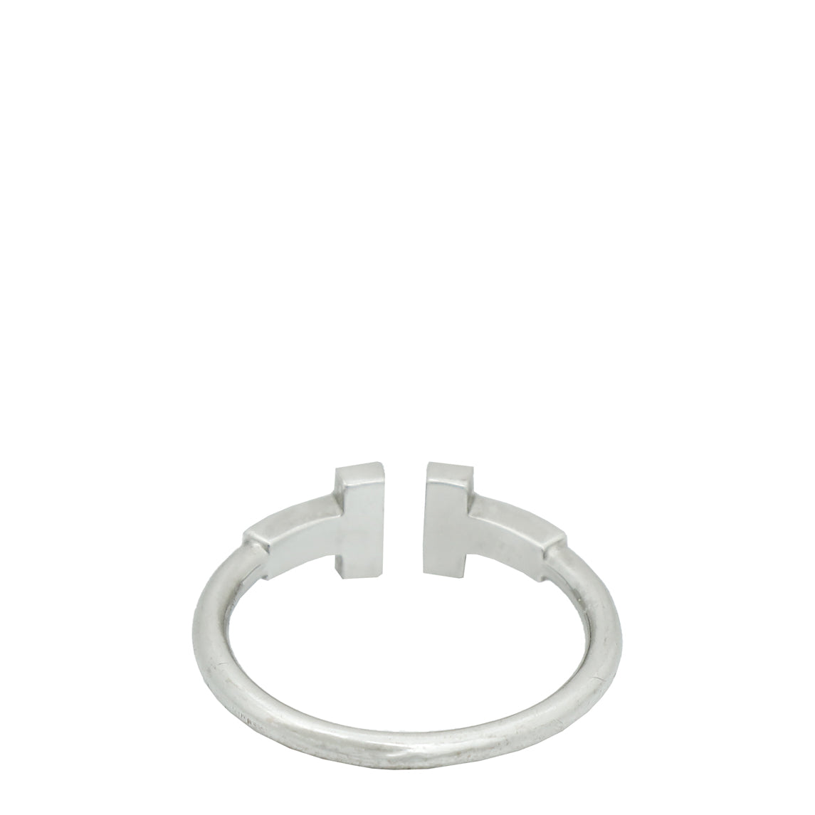Tiffany & Co 18K White Gold Diamond T Wire Ring 51