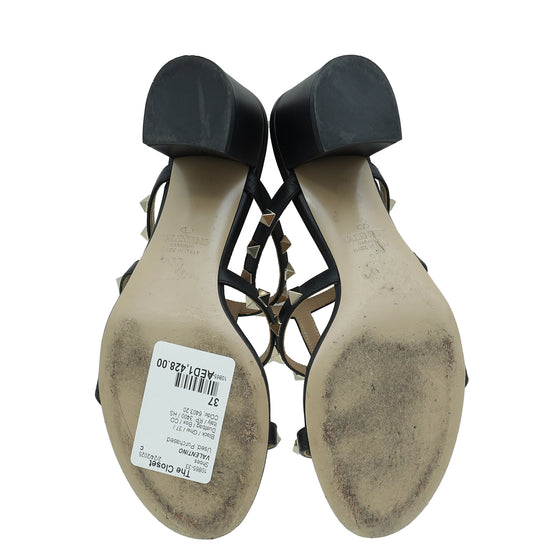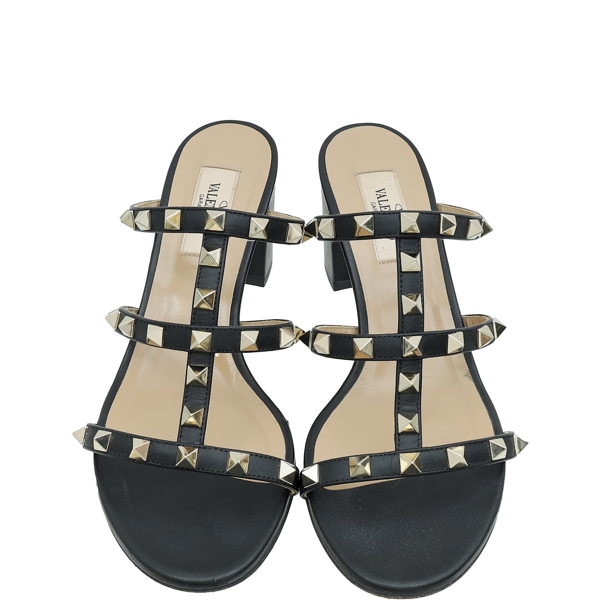 Valentino Black Rockstud Block Heeled Slide Sandals 37
