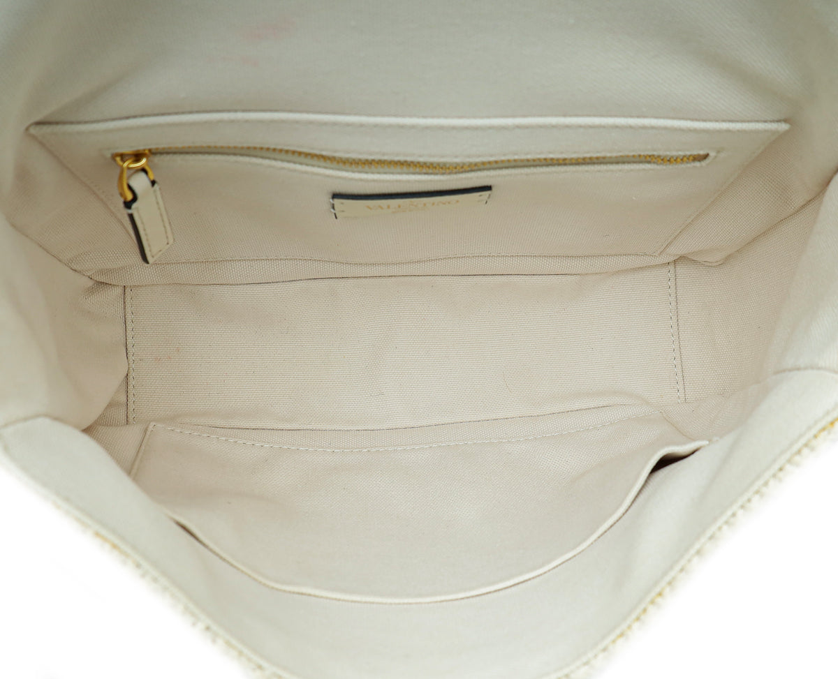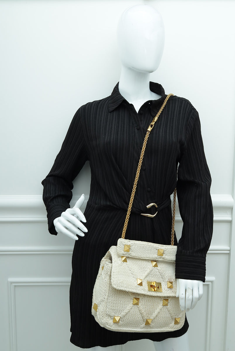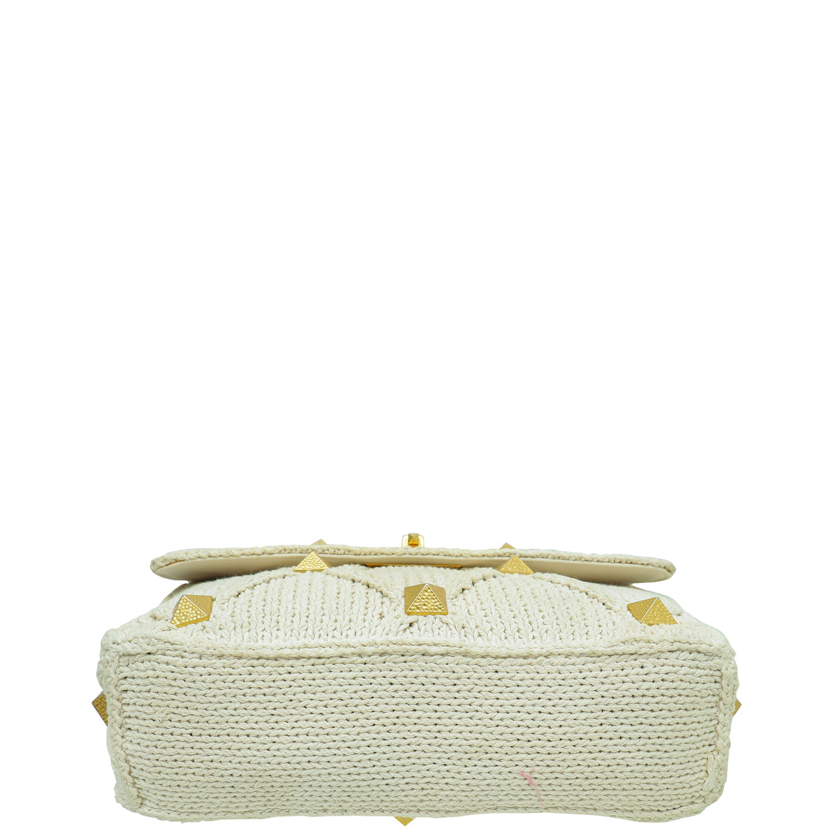 Valentino Ecru Roman Stud Knitted Shoulder Bag Large