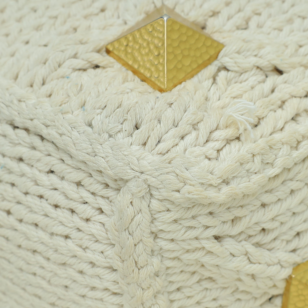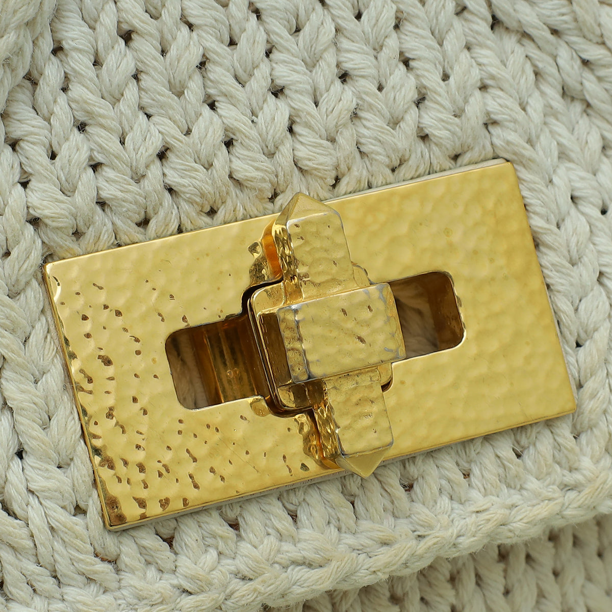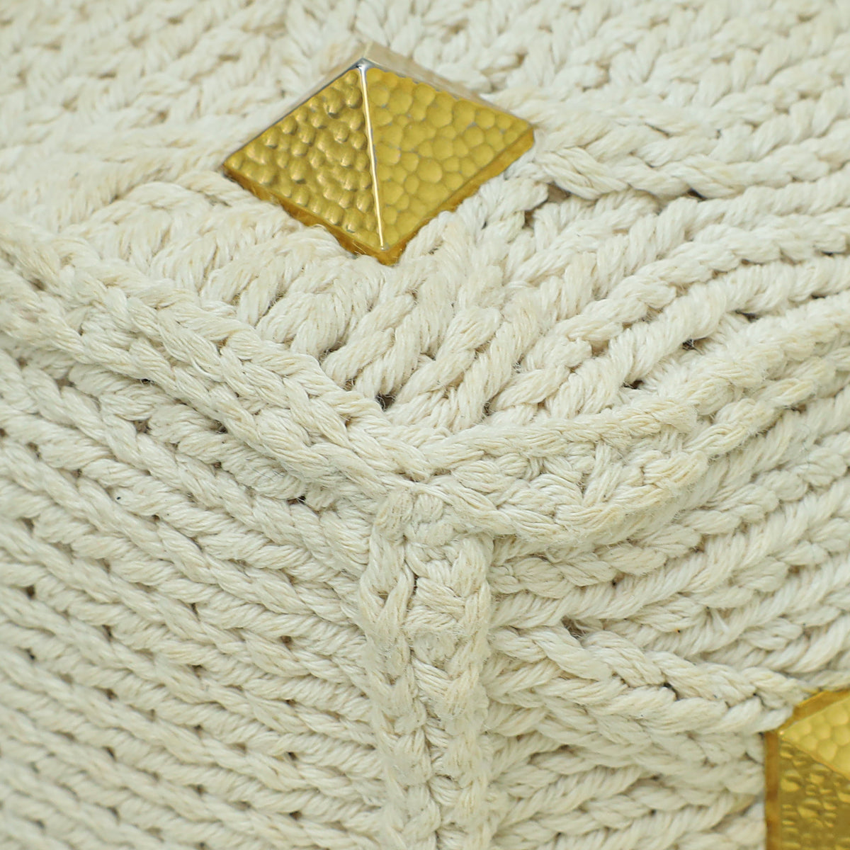 Valentino Ecru Roman Stud Knitted Shoulder Bag Large