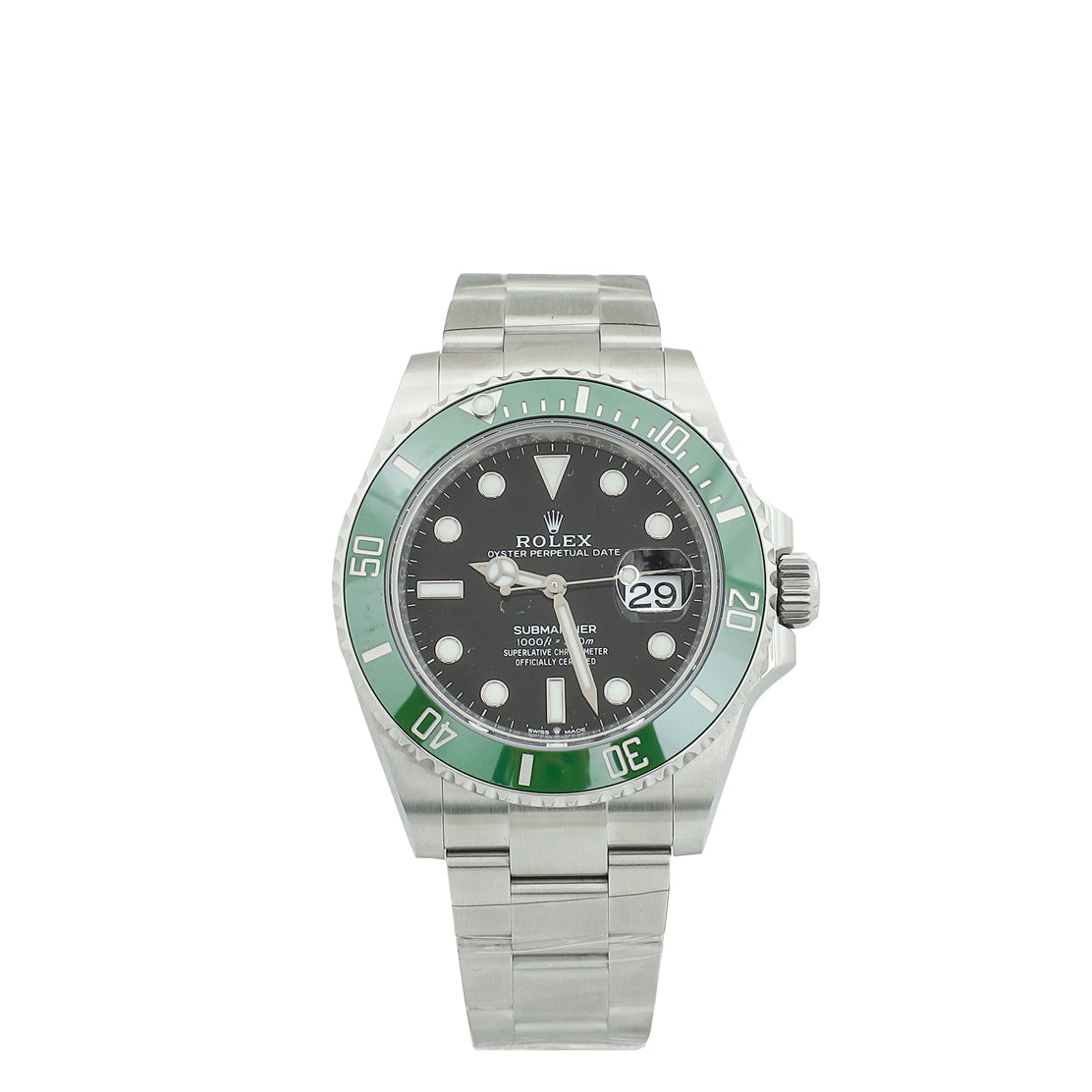 Material: Stainless Steel Case and Bracelet with Green Ceramic Bezel and Black Dial