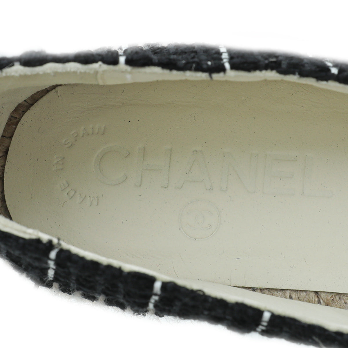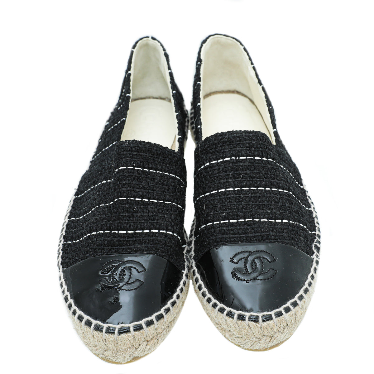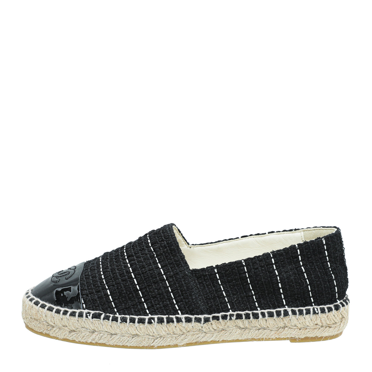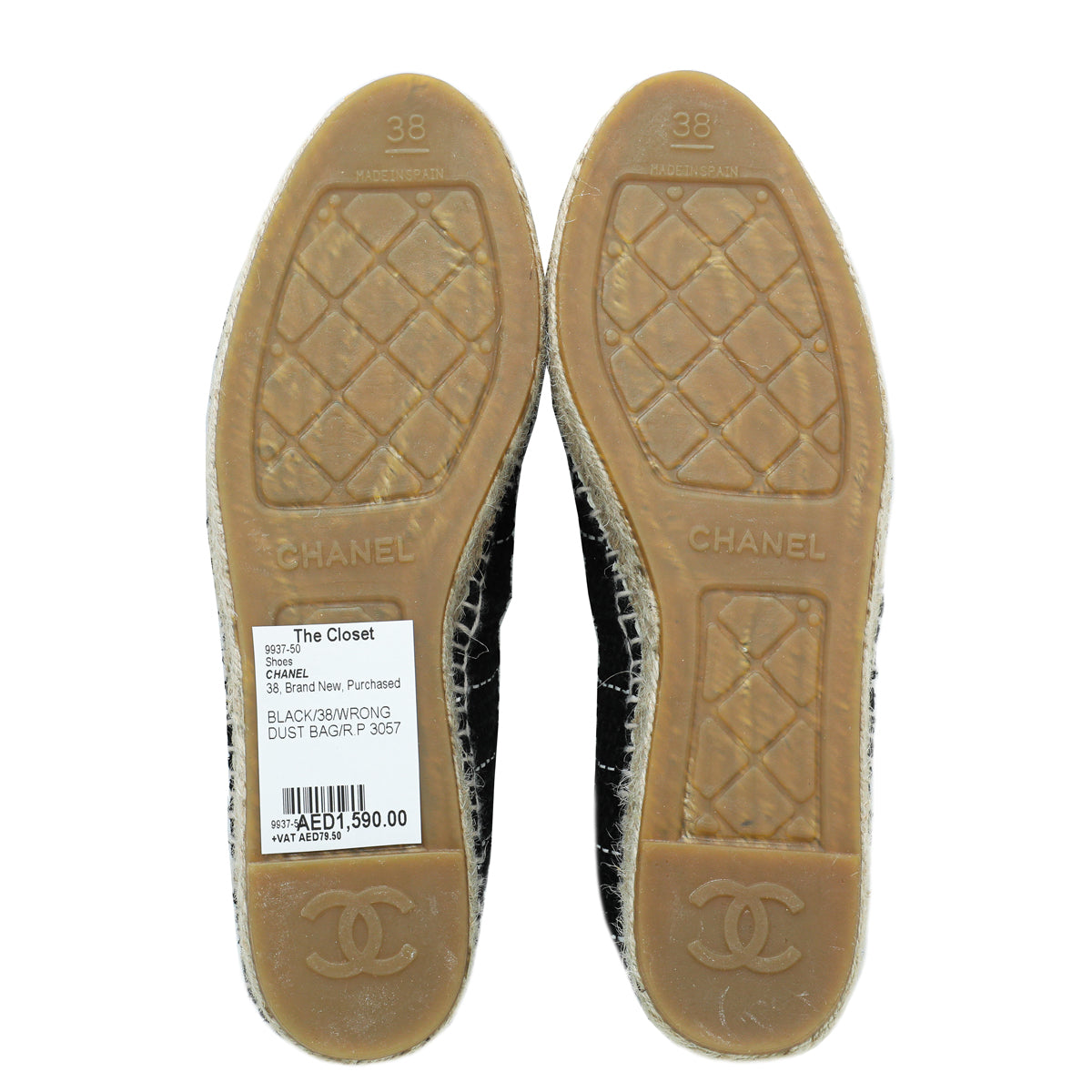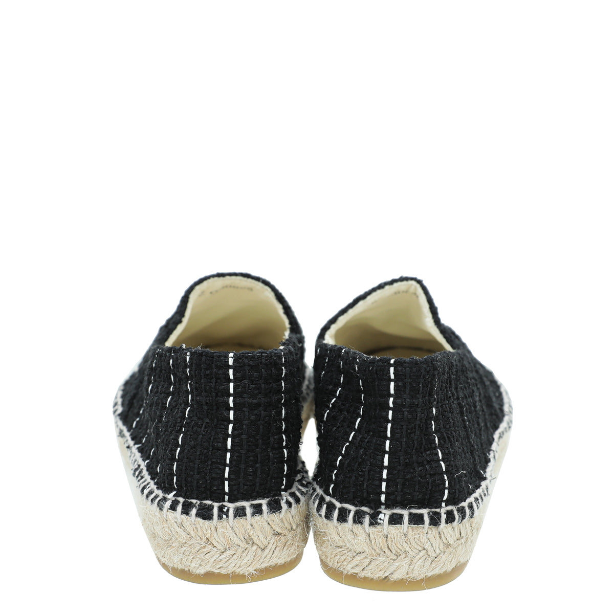 Chanel Black CC Tweed Cap Toe Espadrille Flats 38