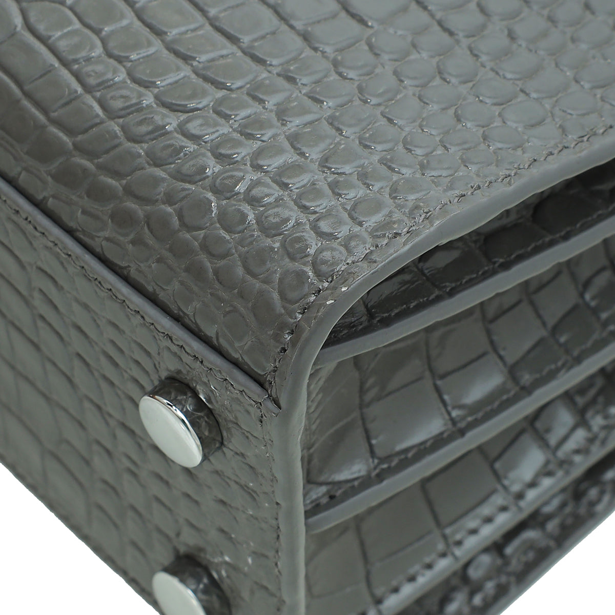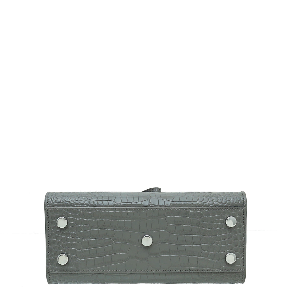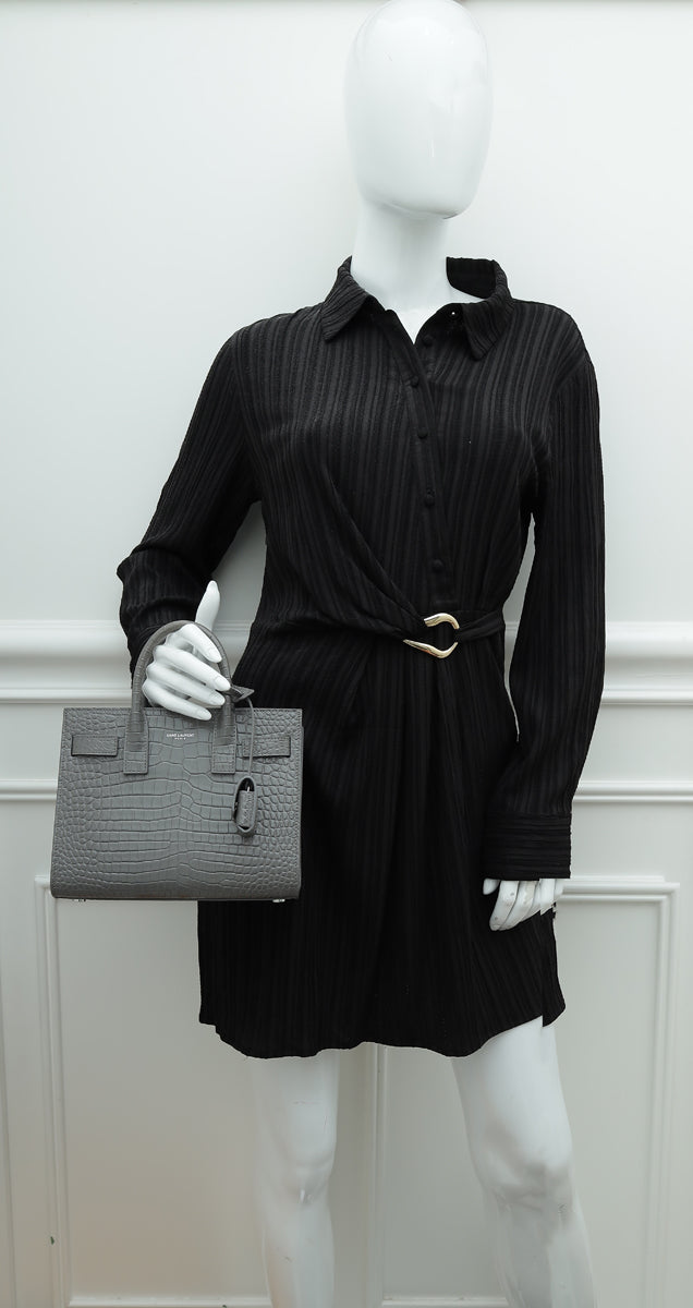YSL Grey Croco Embossed Sac De Jour Nano Bag
