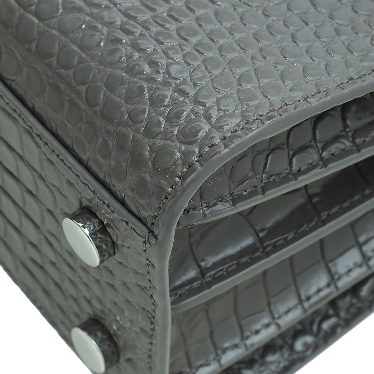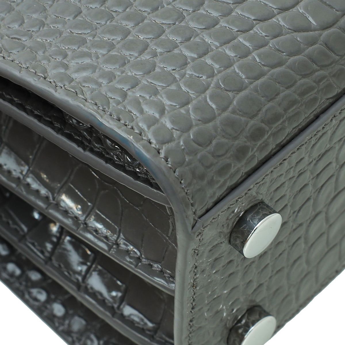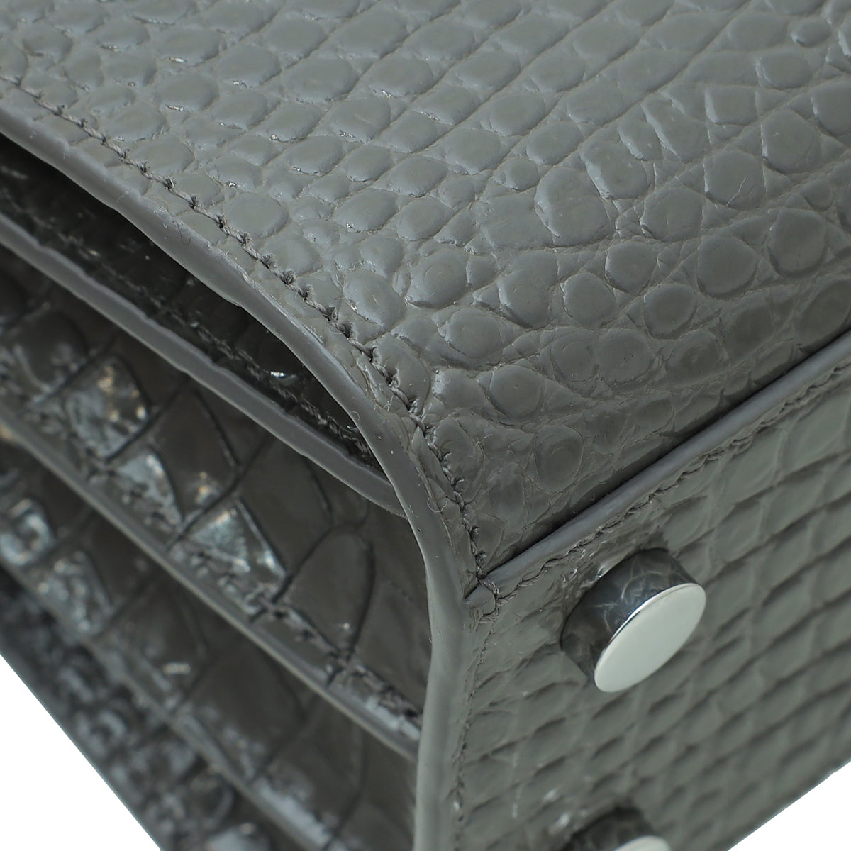 YSL Grey Croco Embossed Sac De Jour Nano Bag