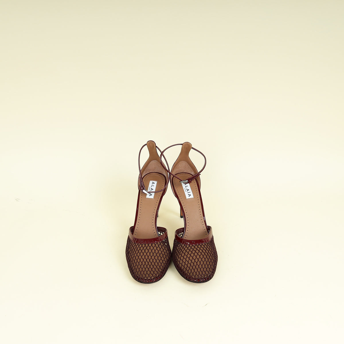 Alaia Rouge Grenat High Fishnet 90mm Pumps 39